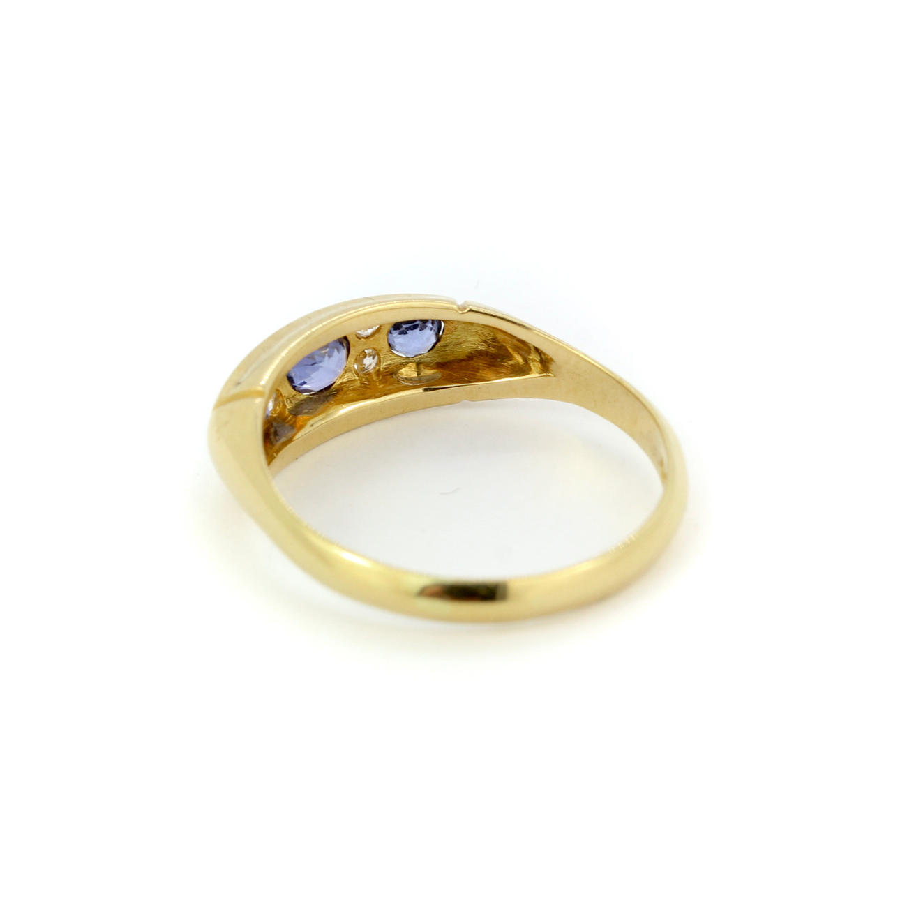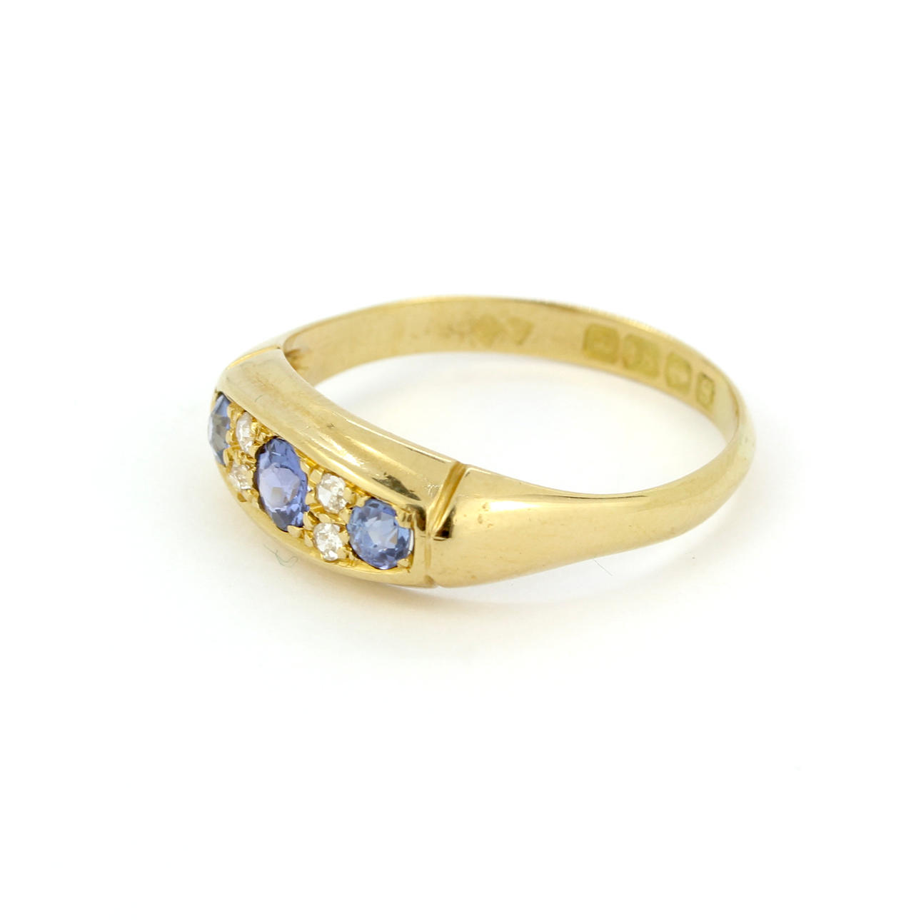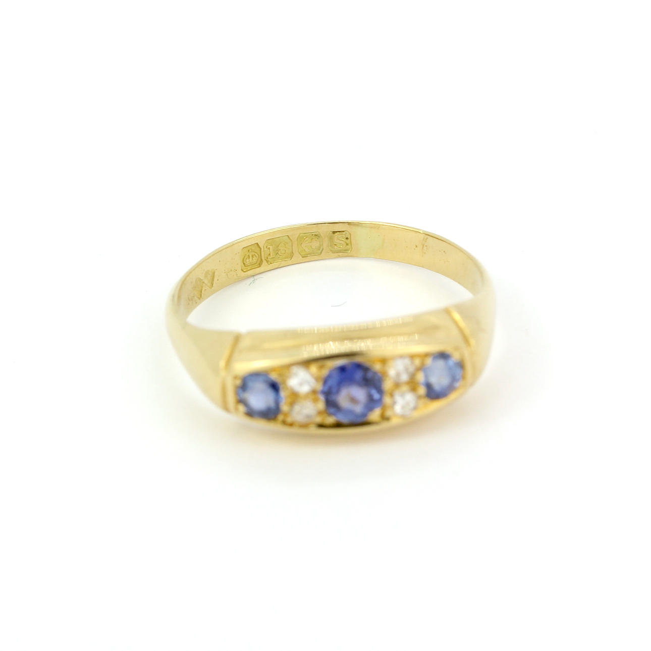 18kt guld blåklintblå Ceylon safir och diamantring, Birmingham 1917, vikt ca 3.24g. Storlek i Storbritannien: P.