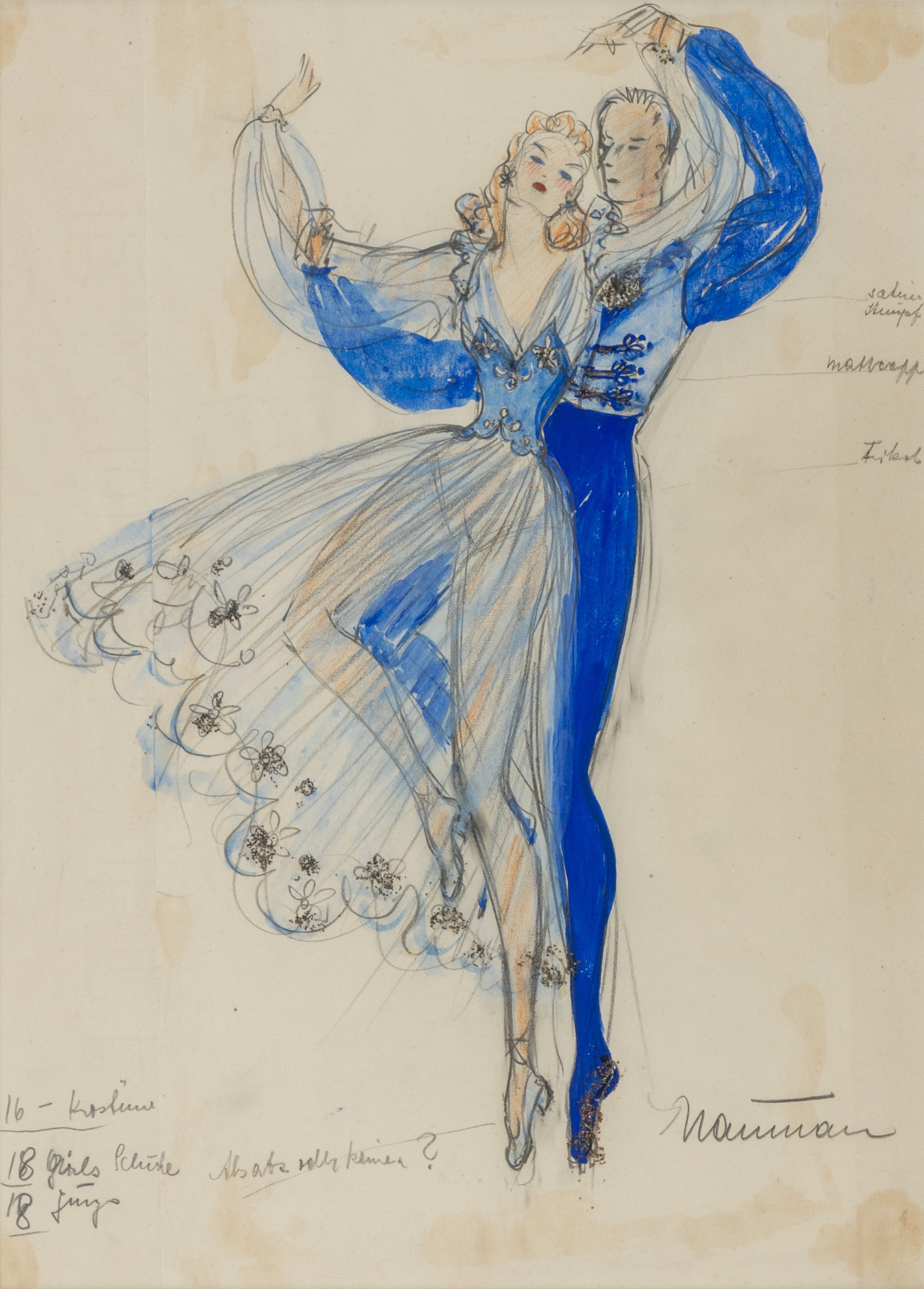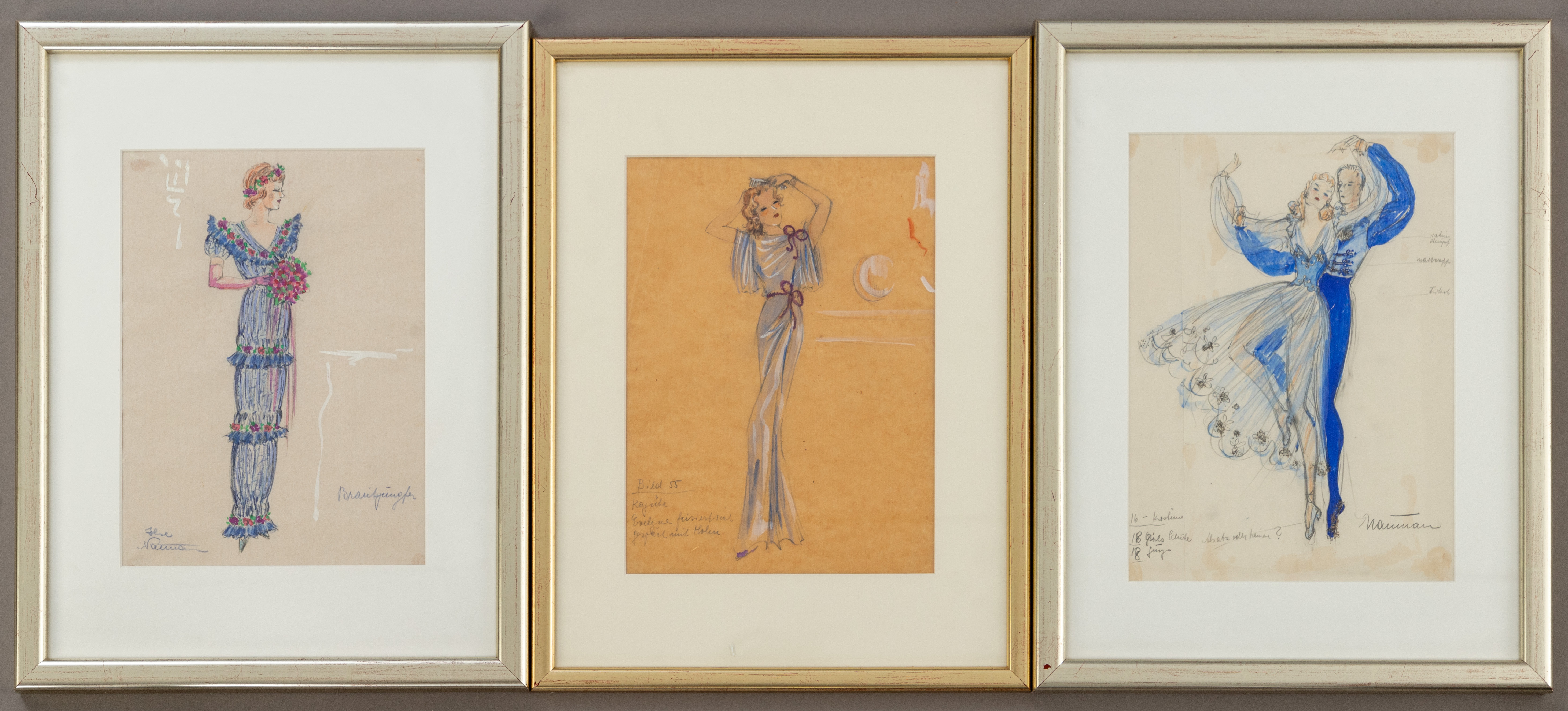 3638629. ILSE NAUMANN (1905-1983). 3 ark kostymdesigner.