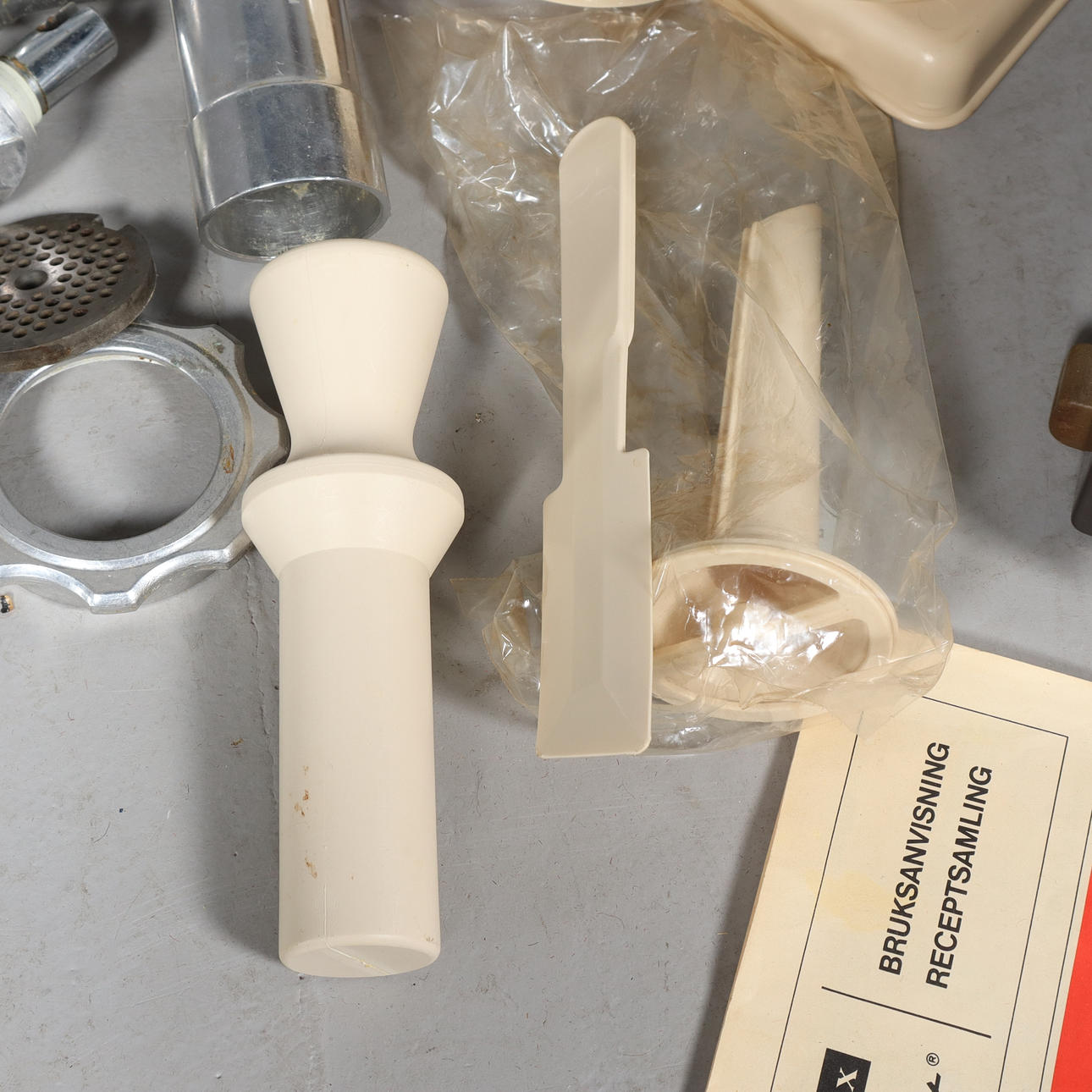 Hushållsmaskin med tillbehör.