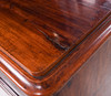 Fanerad med mahogny. Två lådor samt klaff med bakomvarande lådinredning. Beslag i mässing.