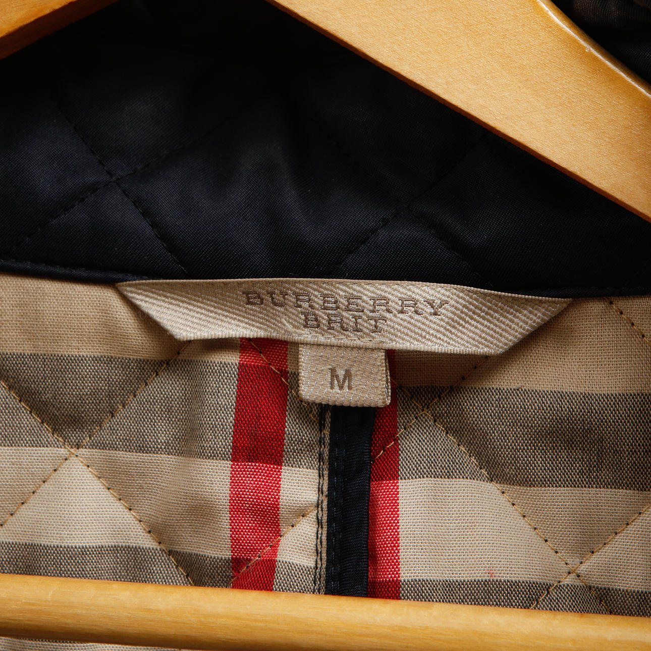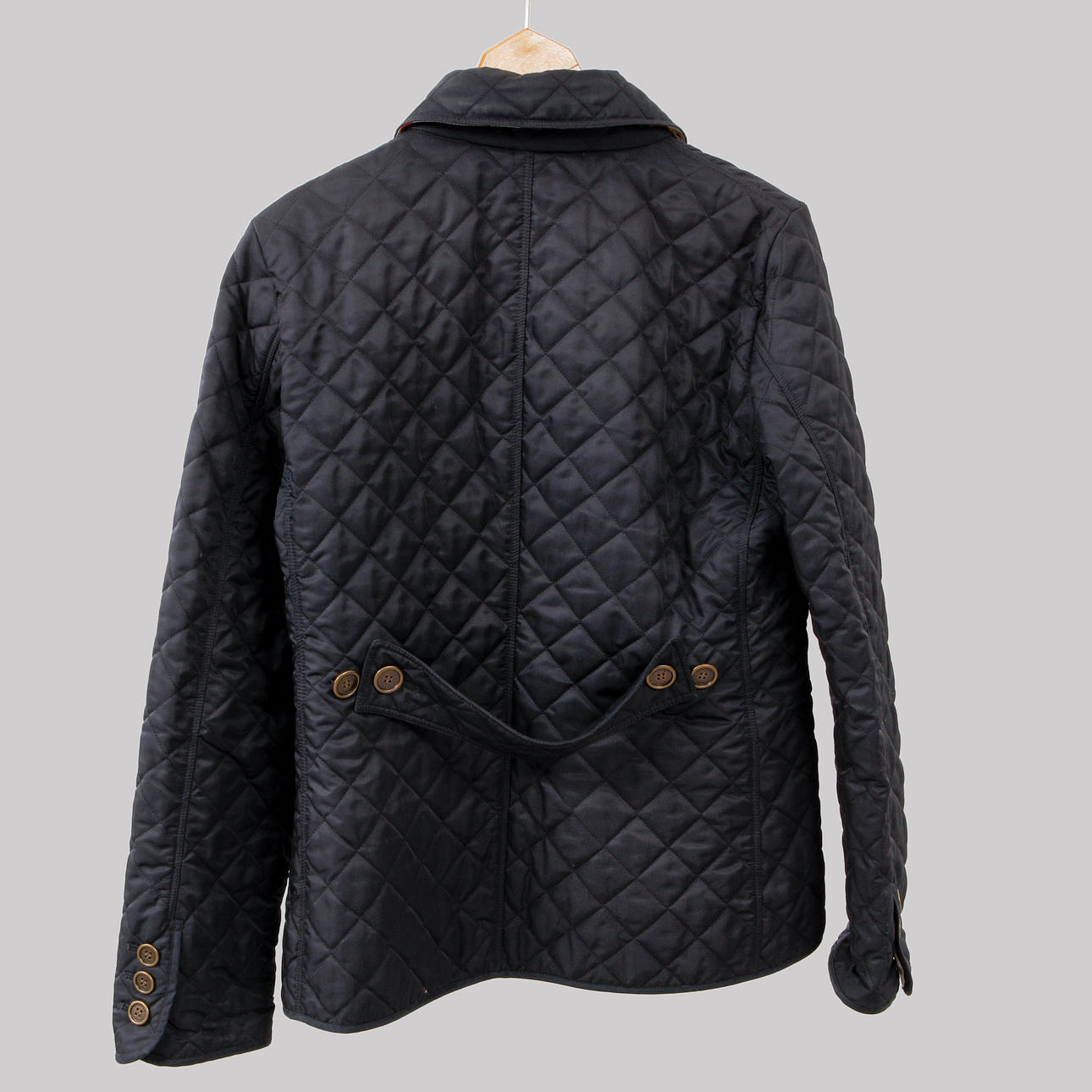 Mörkblå Quiltad textil med rutigt foder.