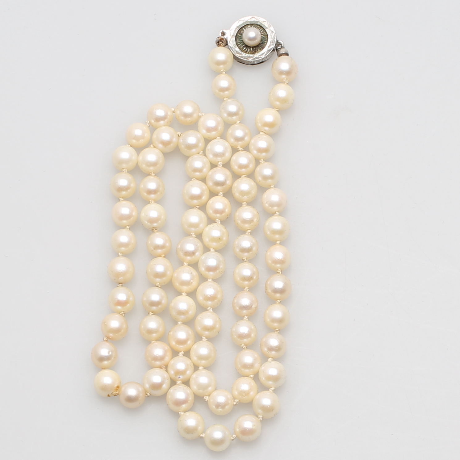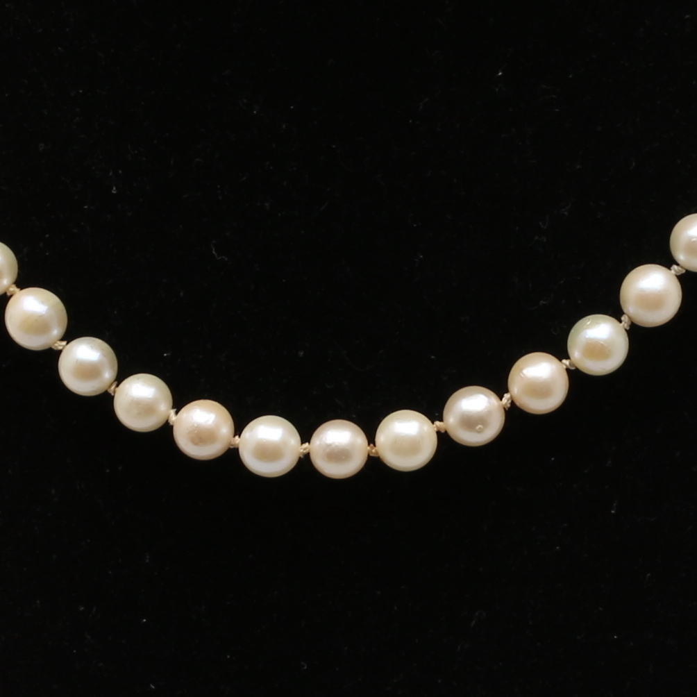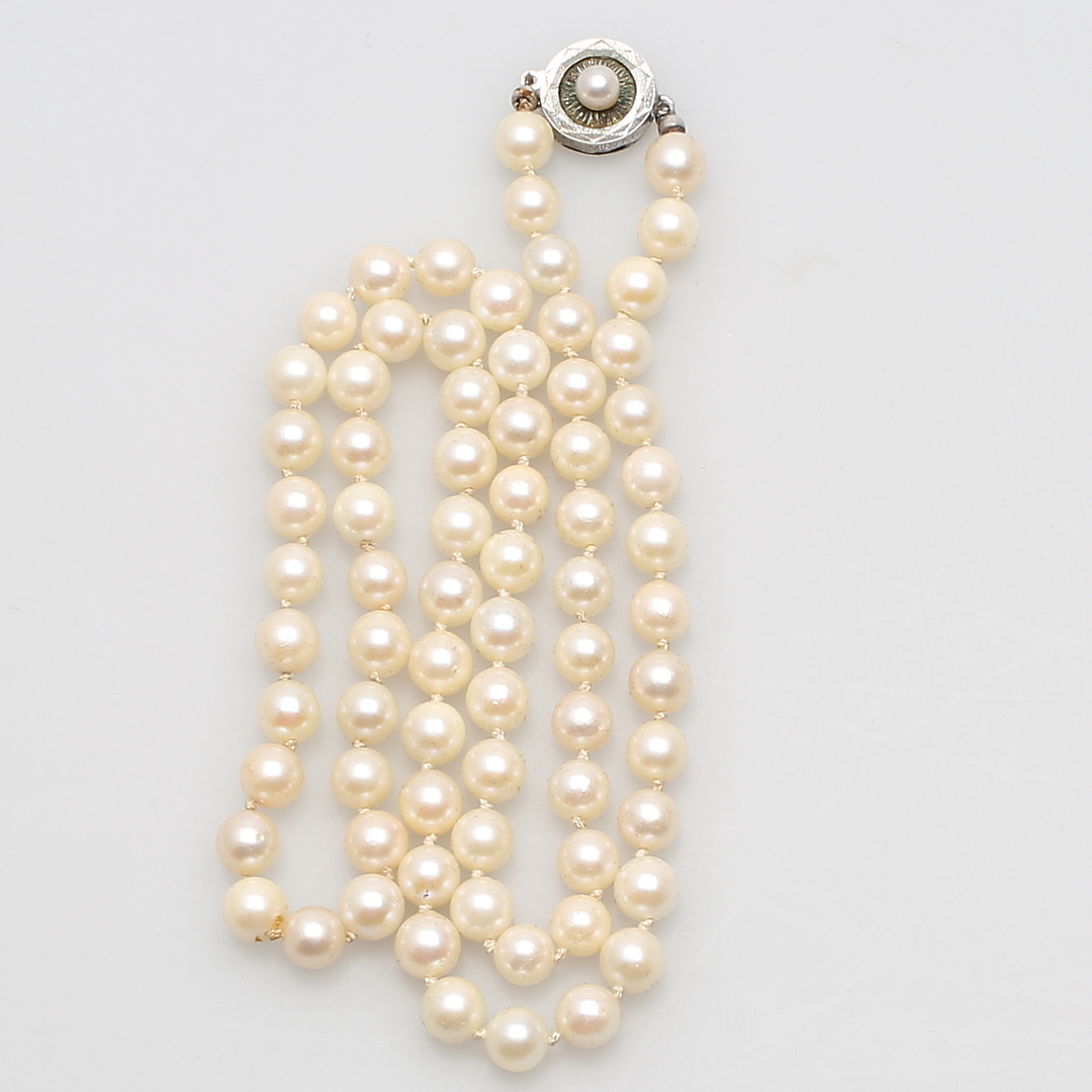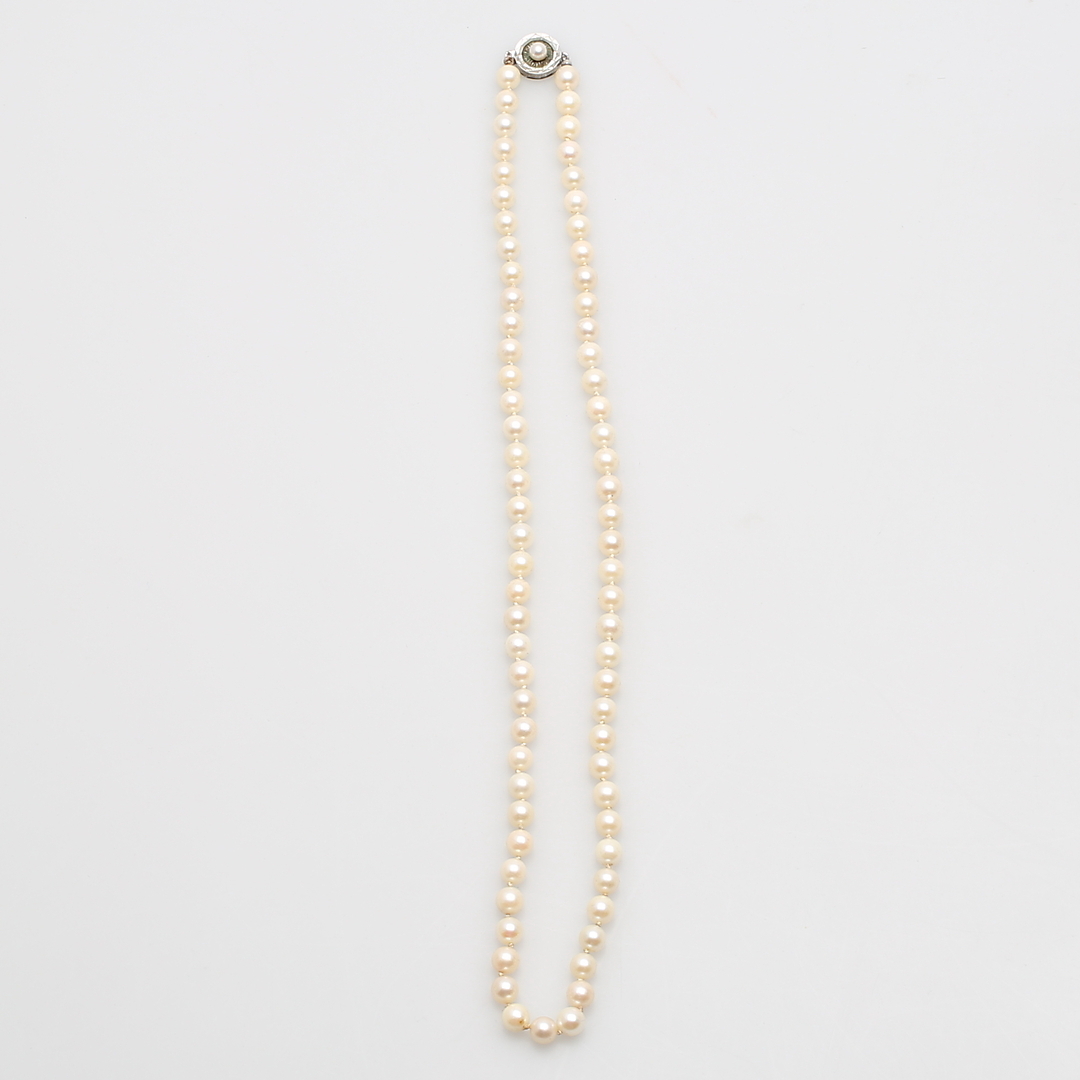 364246. PÄRLCOLLIER, med silverlås.