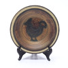 Dekor med tupp. 4 fötter. Diameter ca 22,5 cm.