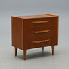 Teak och ek. Tre lådor med draghandtag. Bredd 71,5, djup 37, höjd 69 cm.
