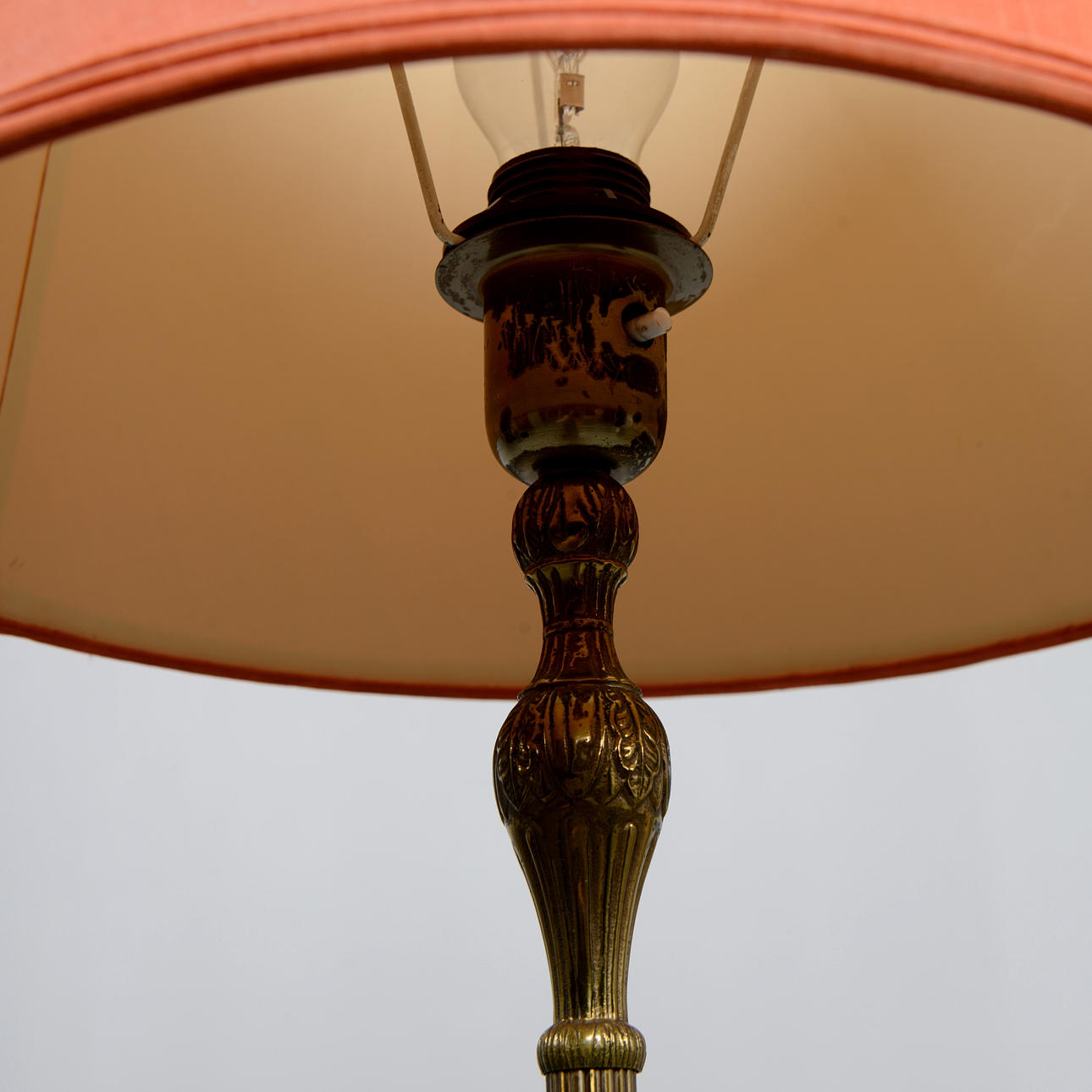 Mässing. Total höjd inklusive skärm 130 cm.