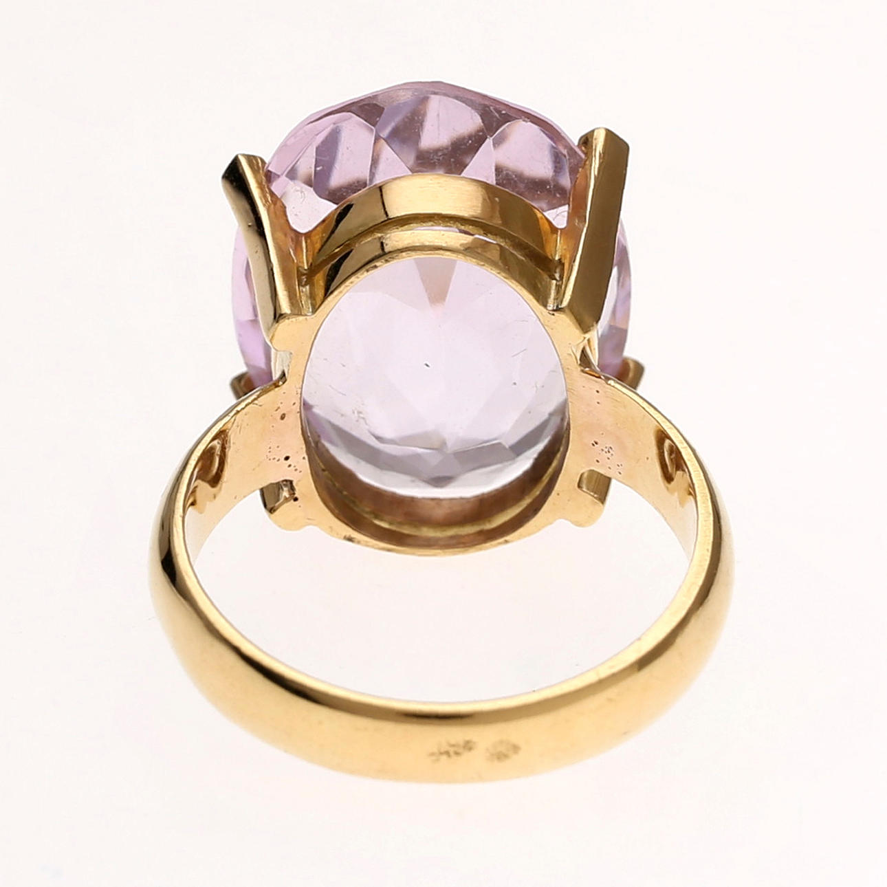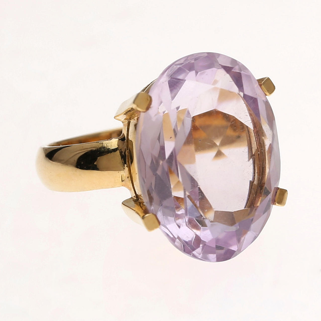 18K guld och ovalslipad ametistkvarts, ca 14.35 ct. Storlek 15/55. 9,6 gr.