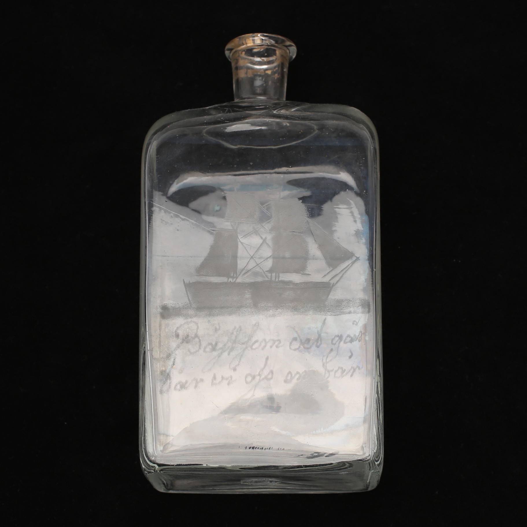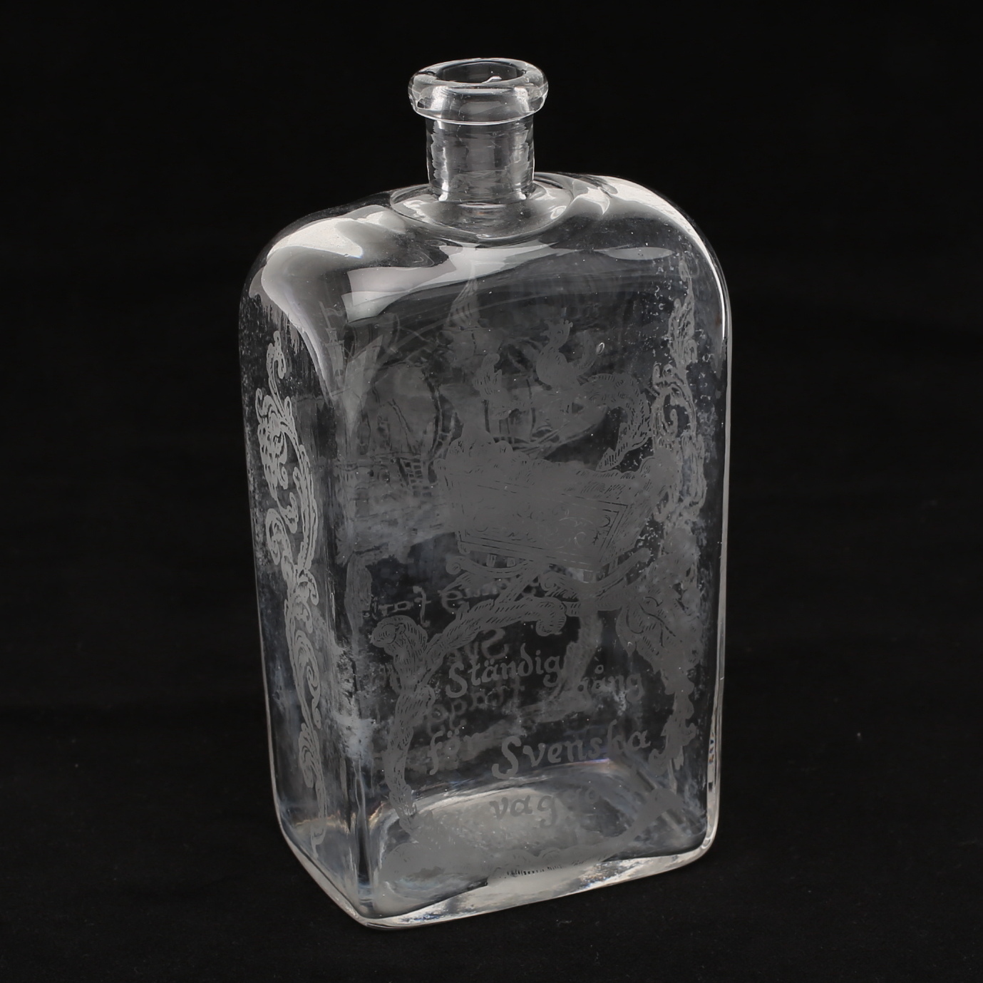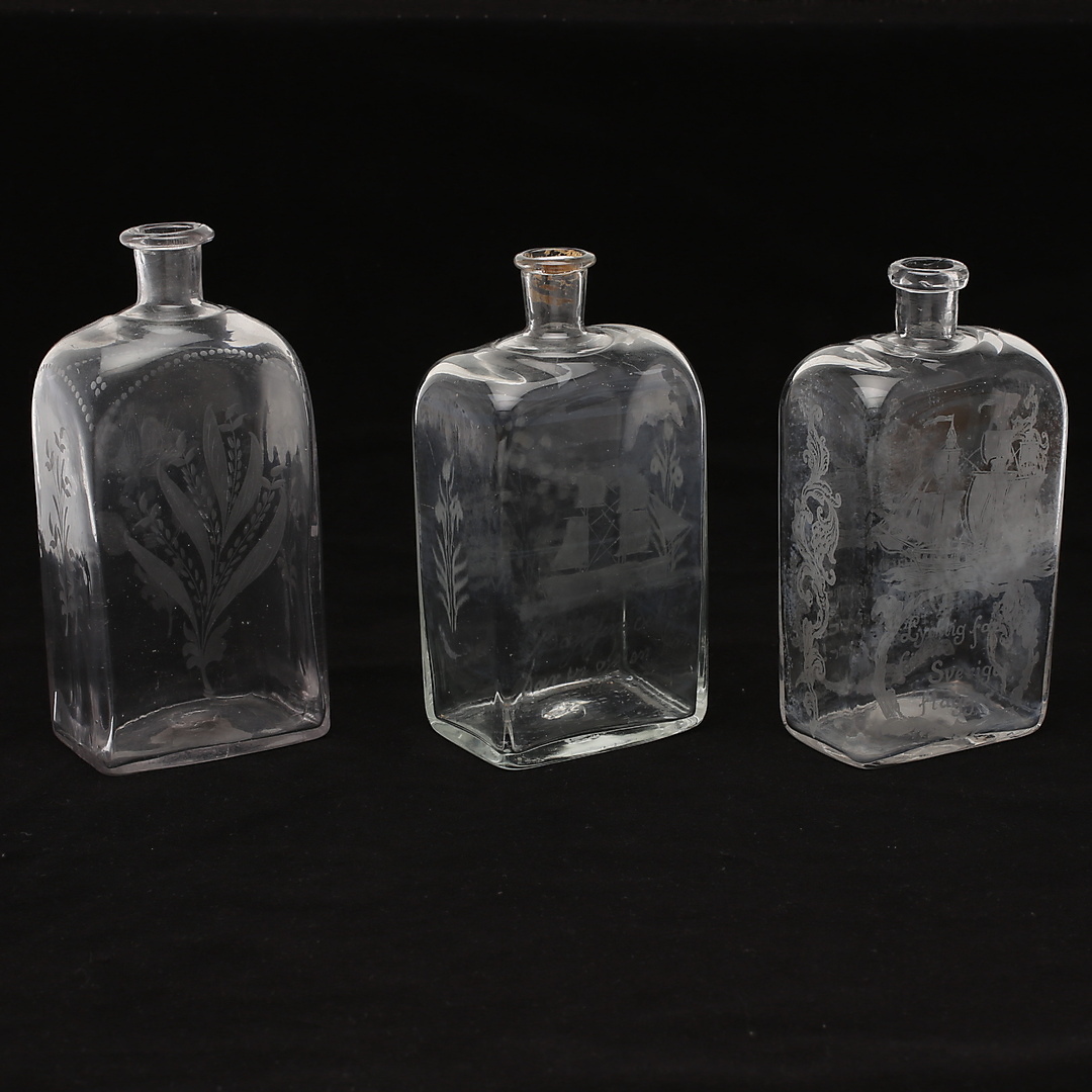 364911. BRÄNNVINSFLASKOR, 3 st. 1800-tal.
