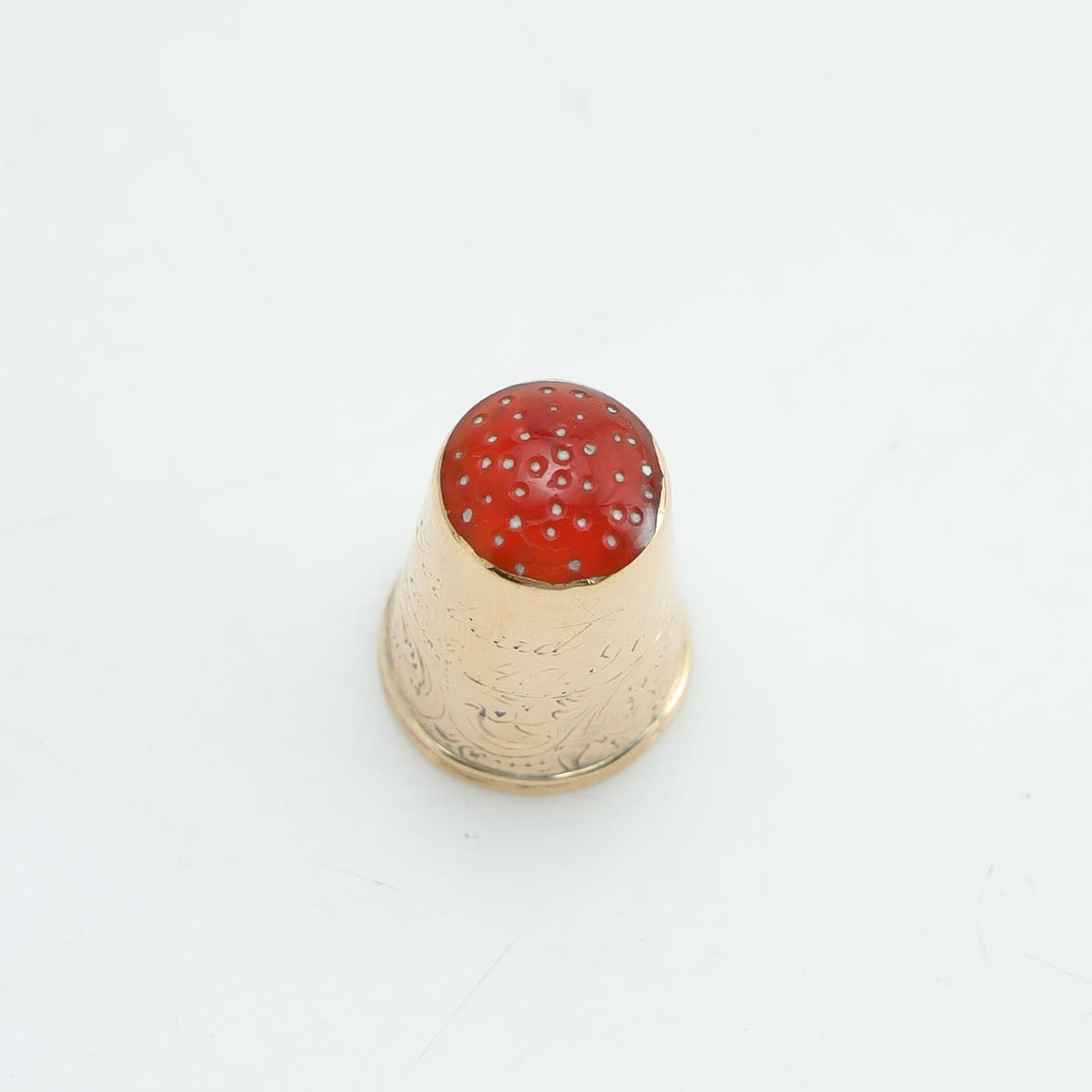 Graverad dekor samt namn. Infattad med karneol. Vikt ca 2,8 gram.