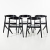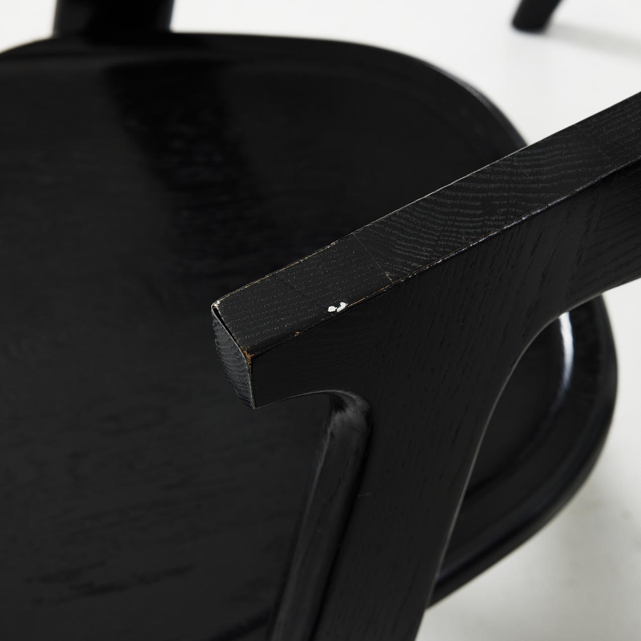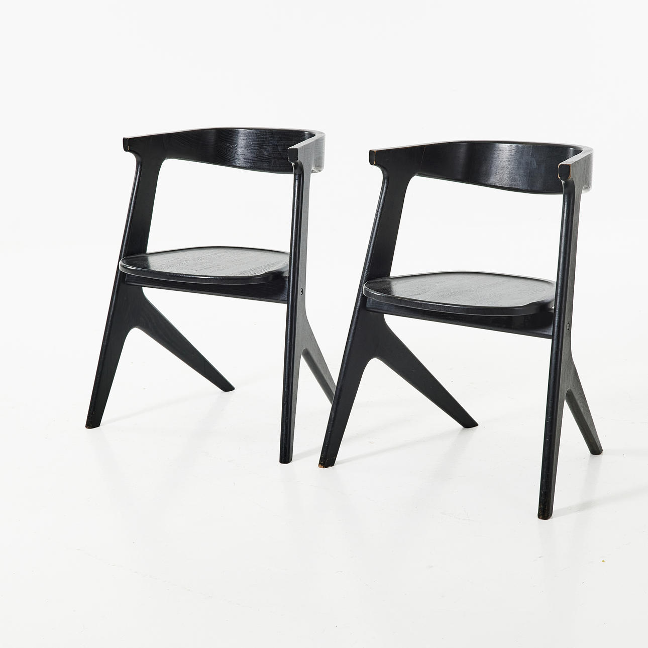 Svartmålade, med snedställda ben och välvd rygg, sitthöjd ca 45cm.