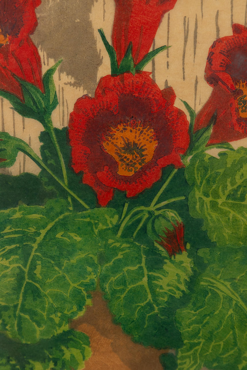 Martin Erich Philipp (1887-1978), gloxynia, färgträsnitt, 1929, signerad och numrerad, monogram i lager, exemplar 109/350, ca. 27 x 24,5 cm, inramad bakom passepartout och glas, med ram ca. 46 x 39 cm.