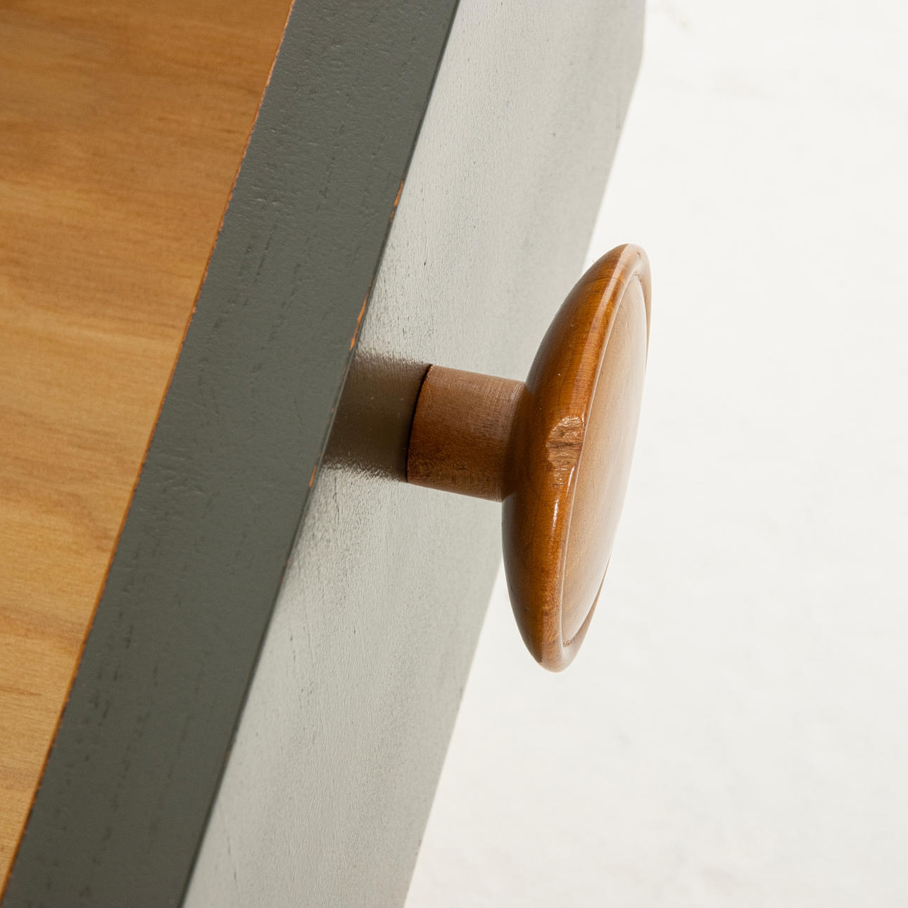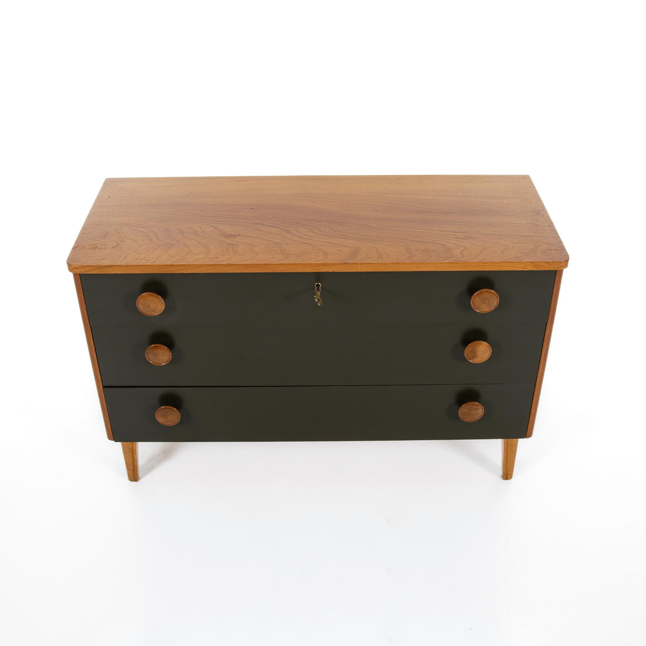 Lådfronter med senare målning. Ytslitage. Nyckel fungerar men är ej original.