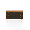 Byrå, tre lådor, almfanér, fronter målade. Lås. Höjd 67.5 cm Längd 105 cm Djup 42 cm.