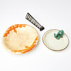 1 fat med sittande kvinna, diameter ca 21,5, höjd ca 12 cm (nagg/färgbortfall)