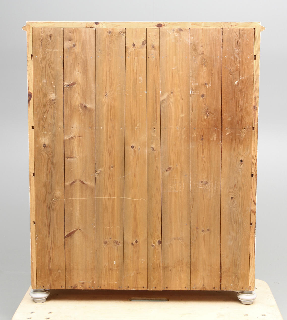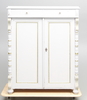Med lådor och pilastrar.Längd 107, bredd 35, höjd 130 cm.
