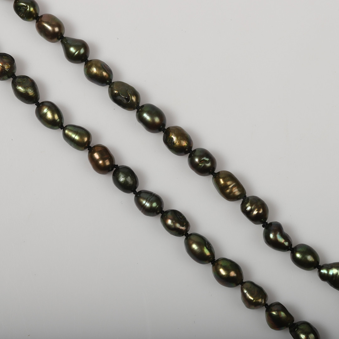 3657325. COLLIER, grönskimrande pärlor.