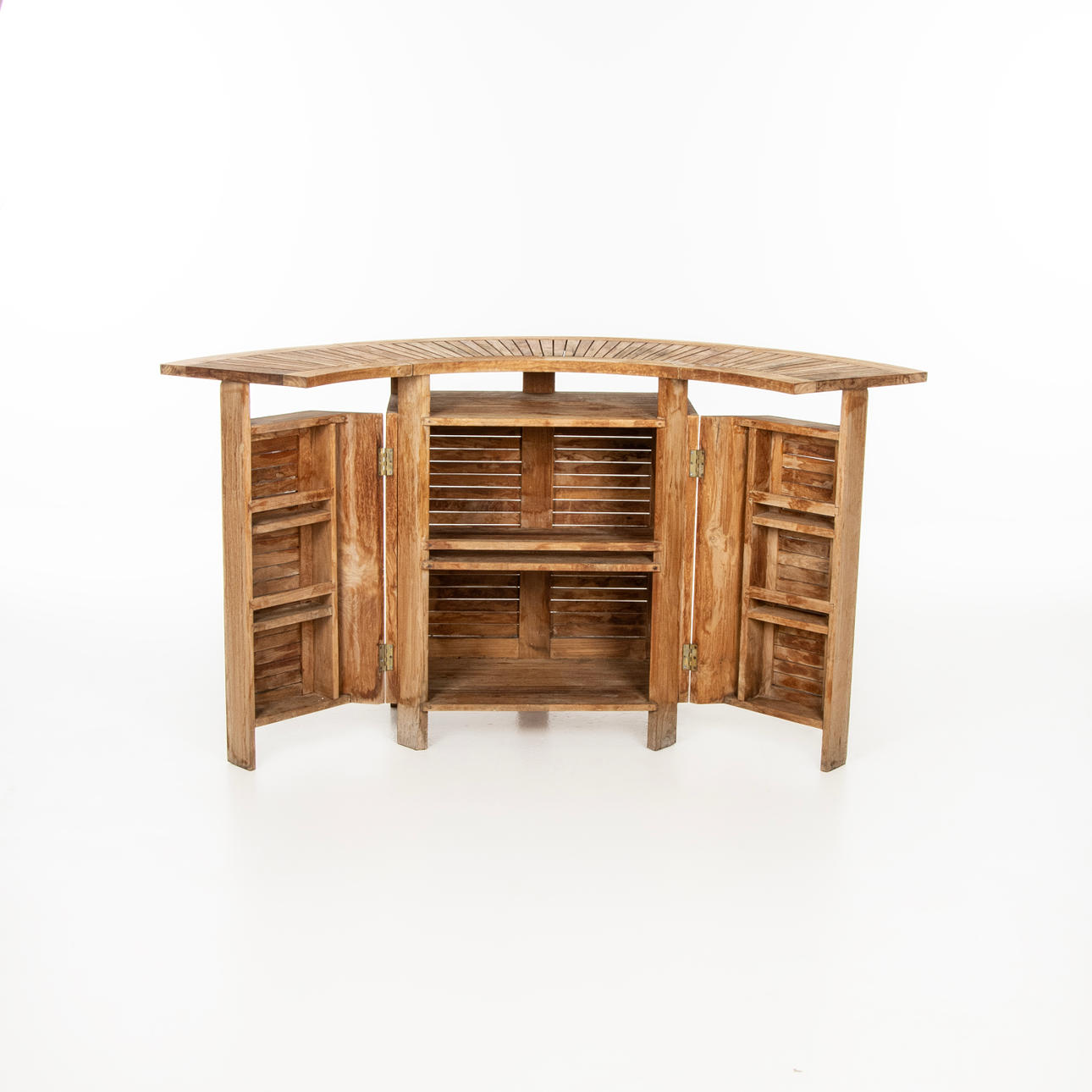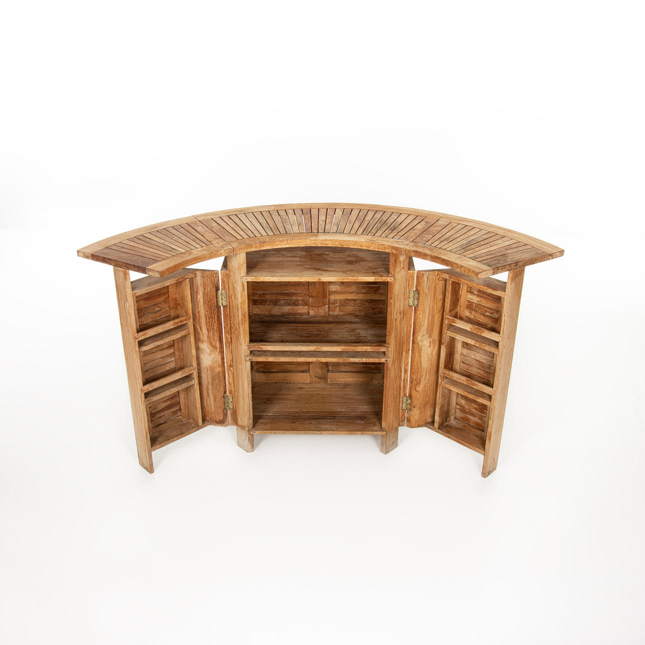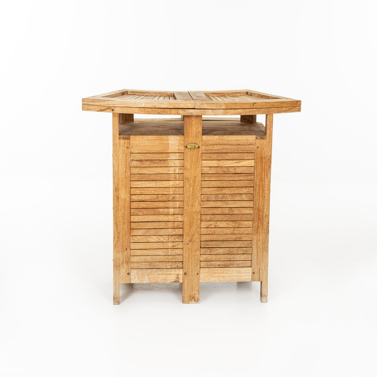 Bar med utfällbar bardisk, dörrar och inredning. Märkt TEAK Plantation Timbers.