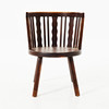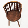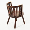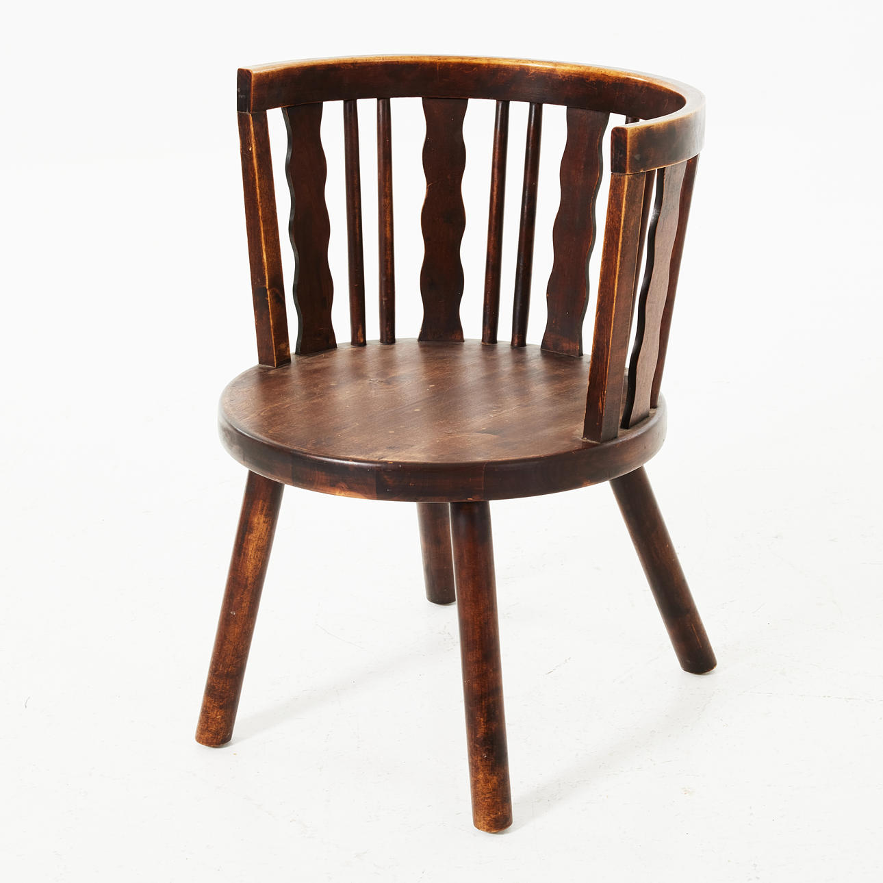 I mörkbetsad björk, rundad rygg, med svarvade ben, sitthöjd ca 40cm.