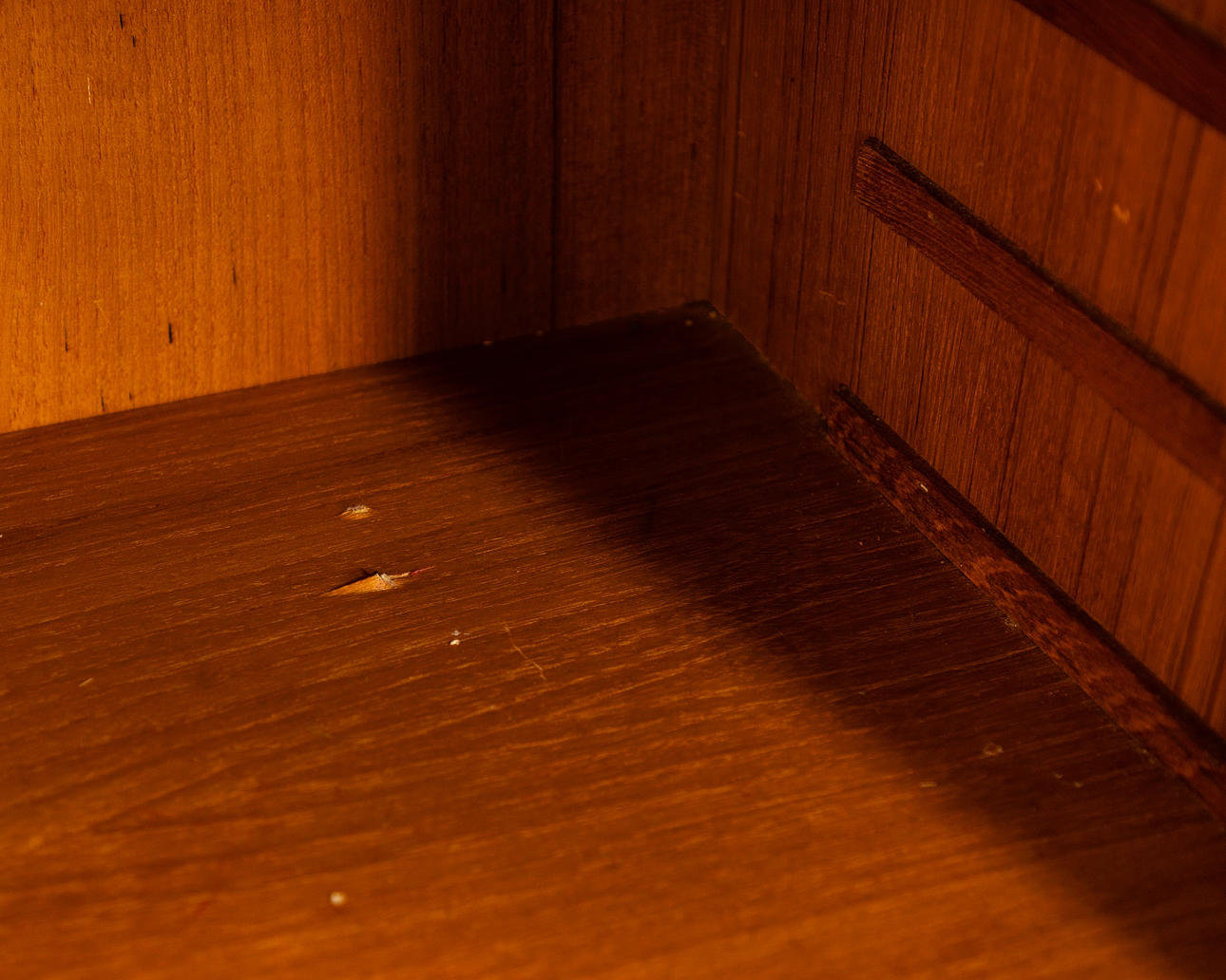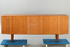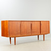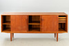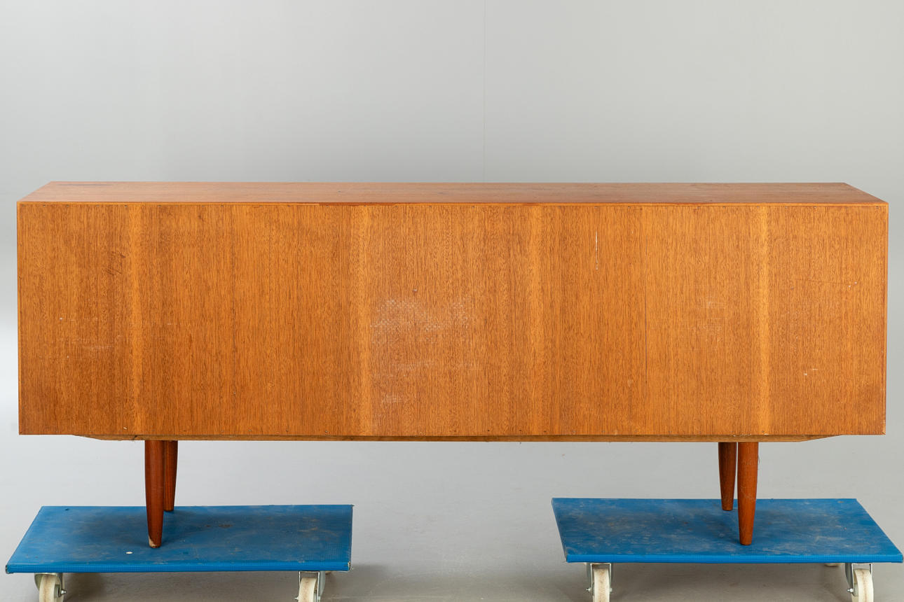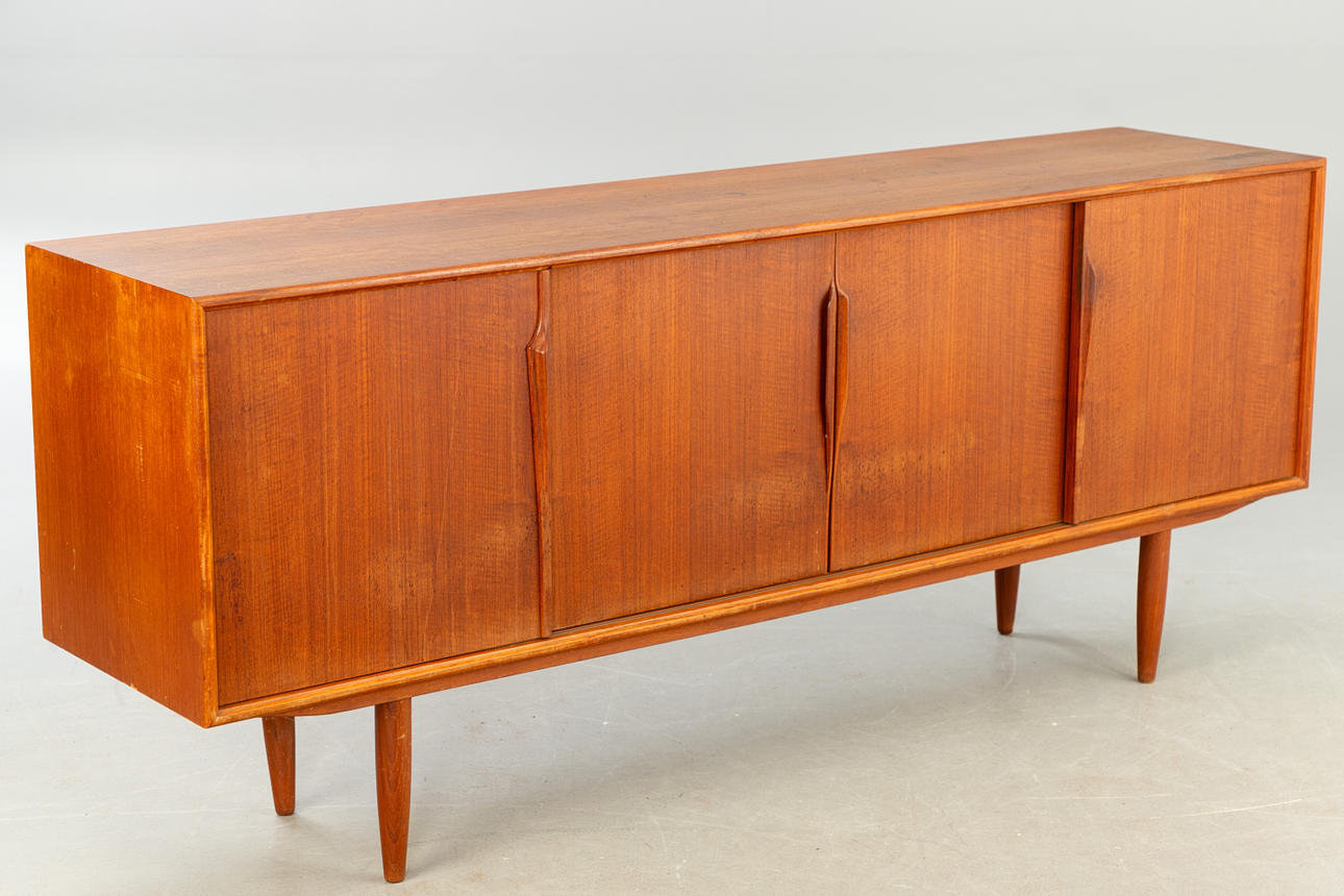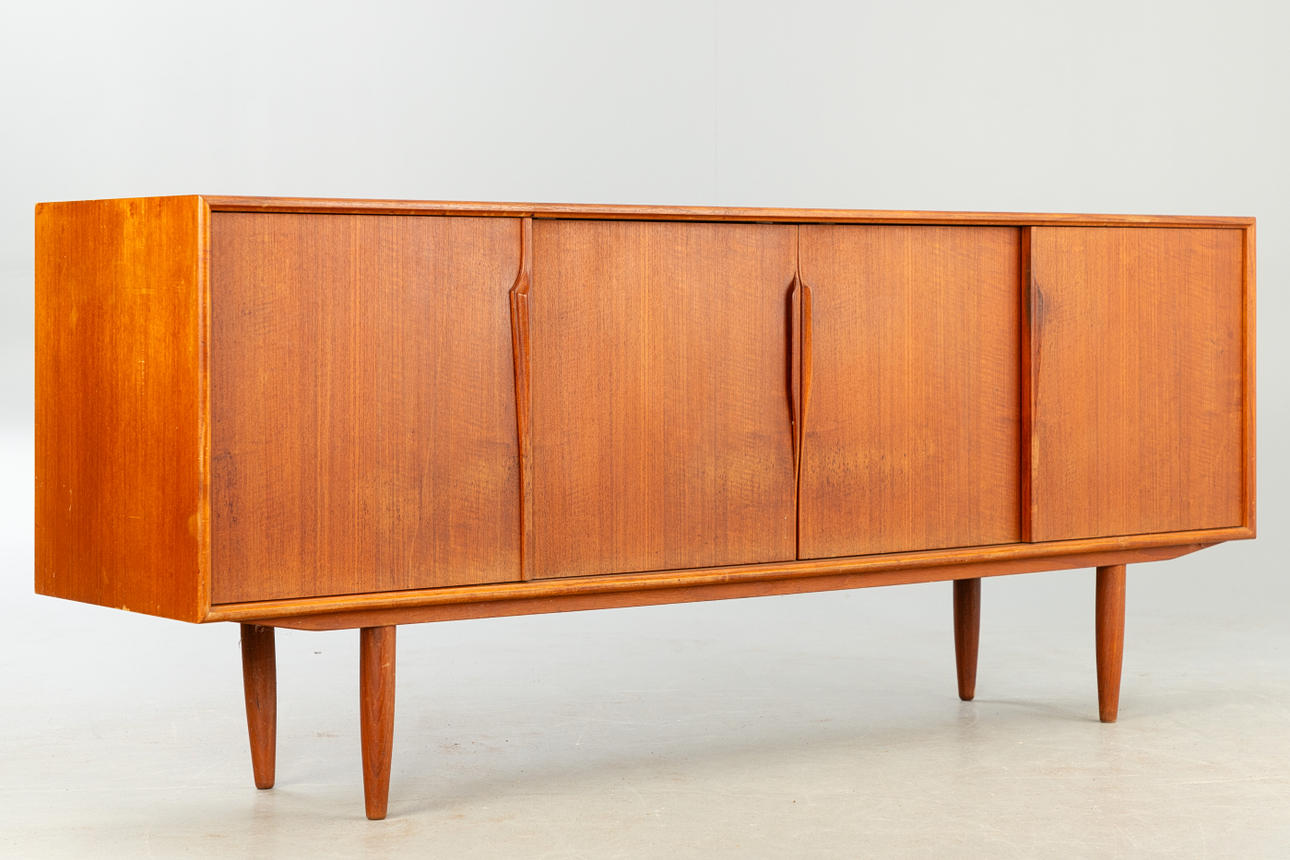 teakträ 4 skjutdörrar, hyllor och lådor.