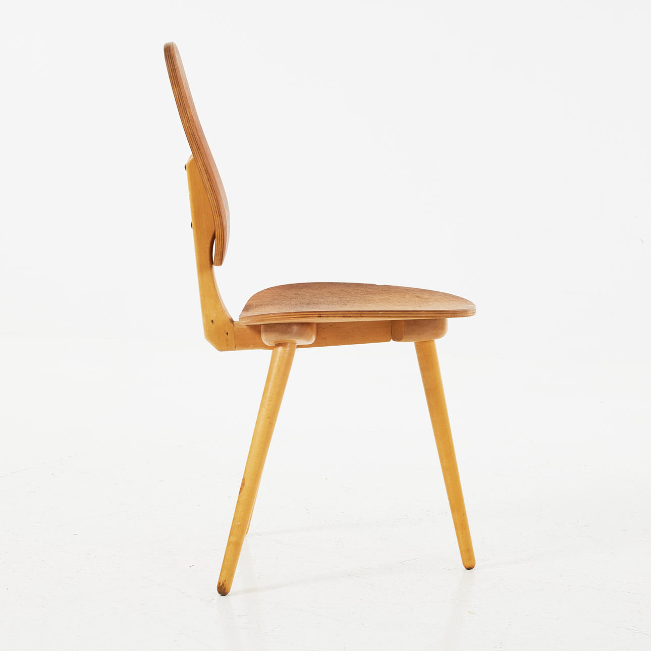I Skiktlimmad teak, formgiven 1958, sitthöjd ca 45cm.