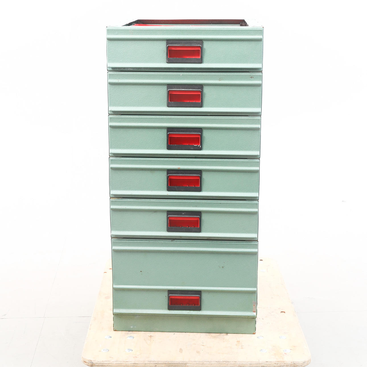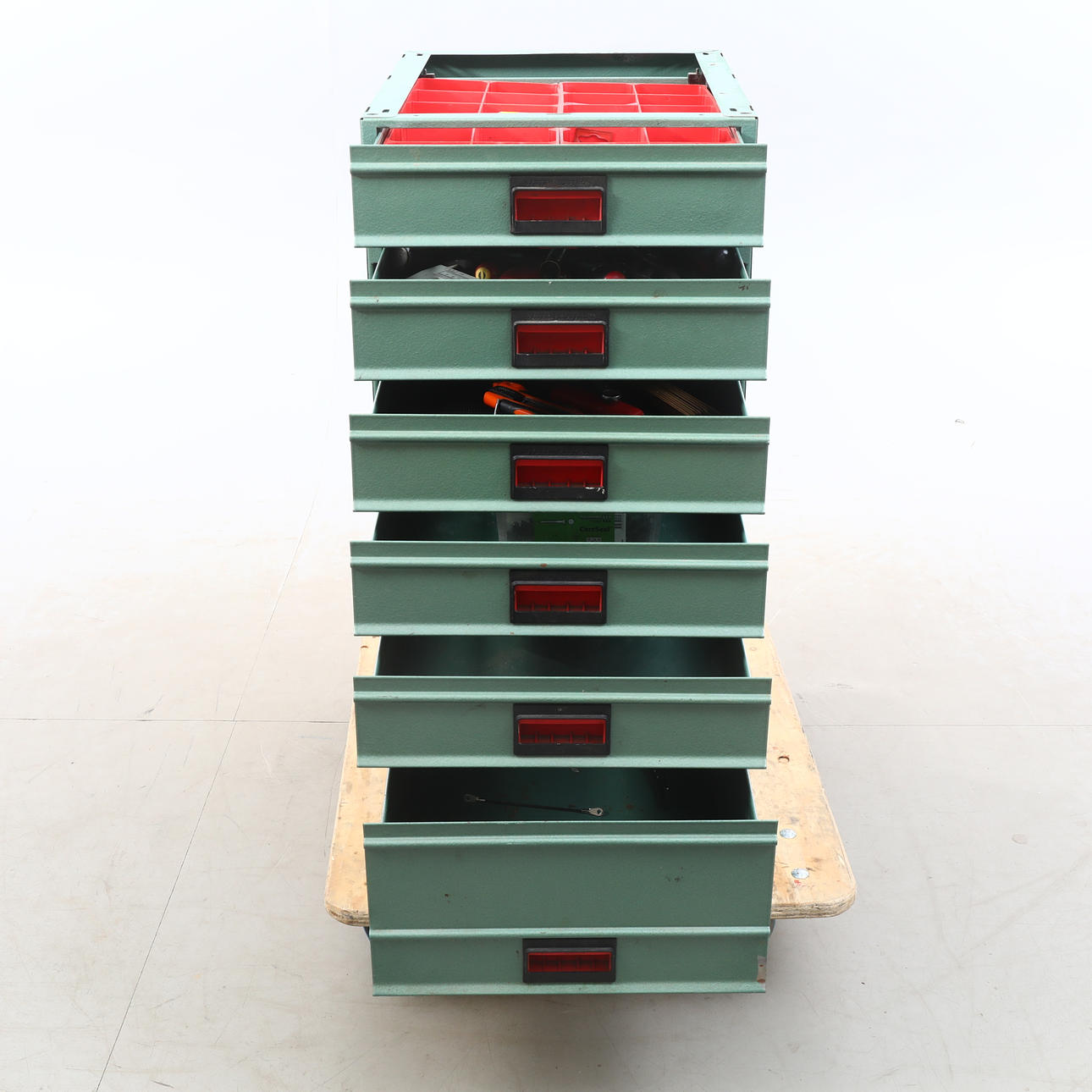 Inredning till skåp bil, 6 lådor/metall. Lösa skivan.