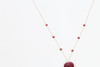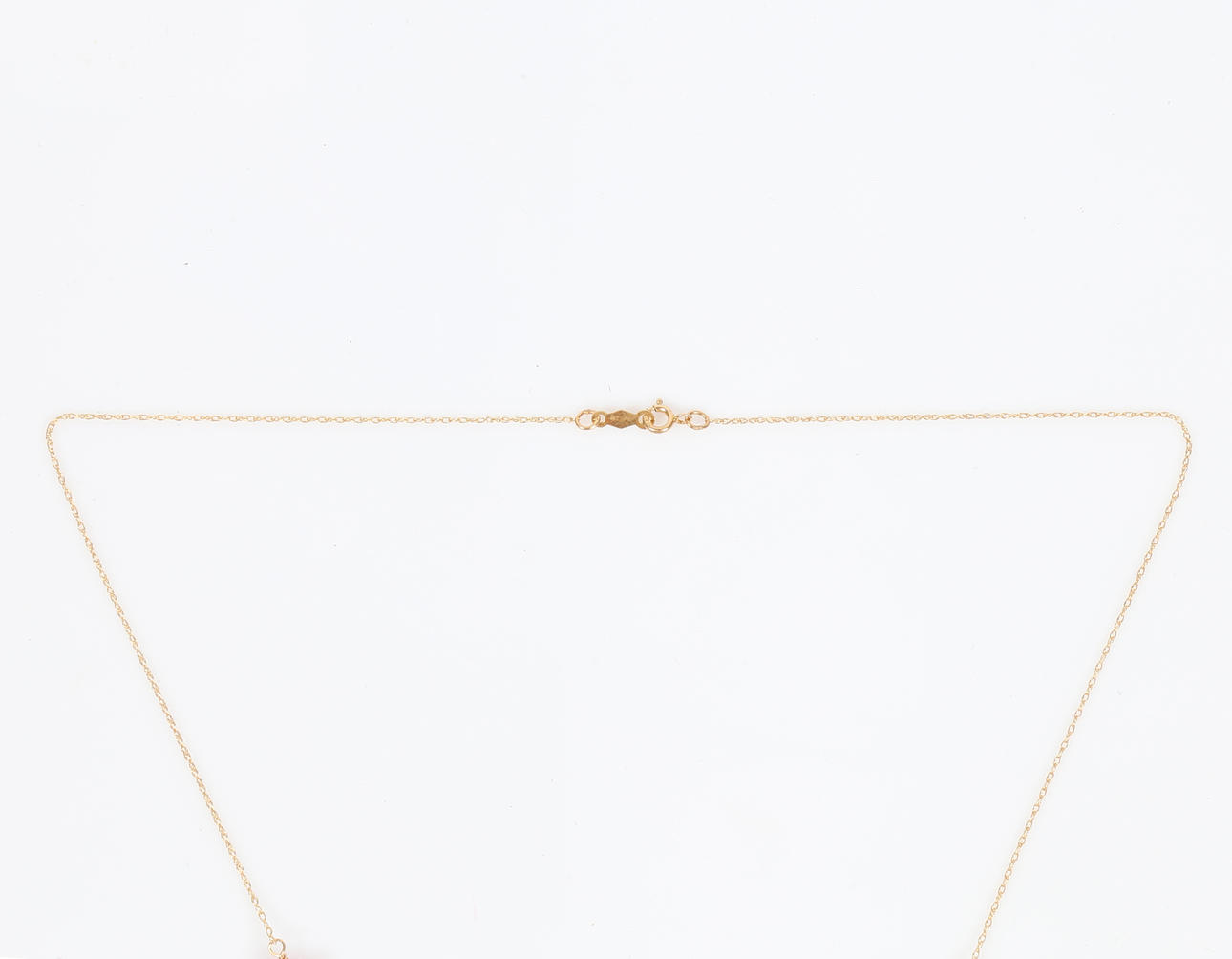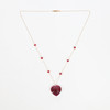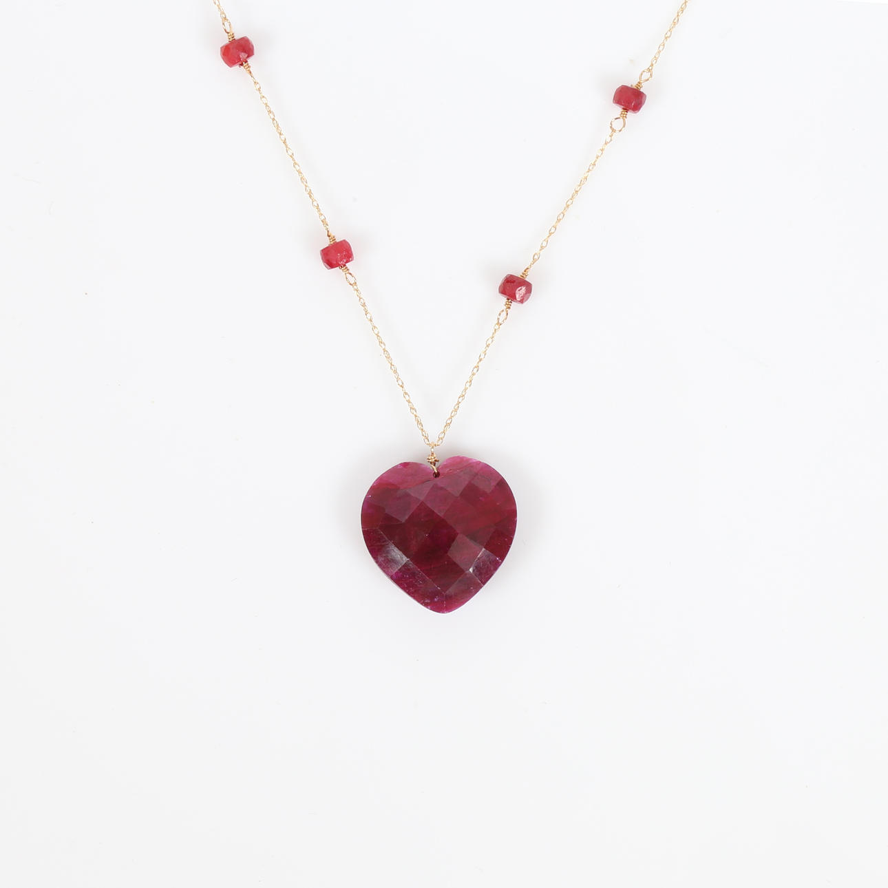 Ett fasetterat rutkskuret hårdstenshjärta som mäter 20 x 20 mm. Upphängd på en fin gul metallkedja med sex kvartsdistanser. Gul metallkedja stämplad '14k'. Längd 17.5". Bruttovikt 6.8g.