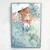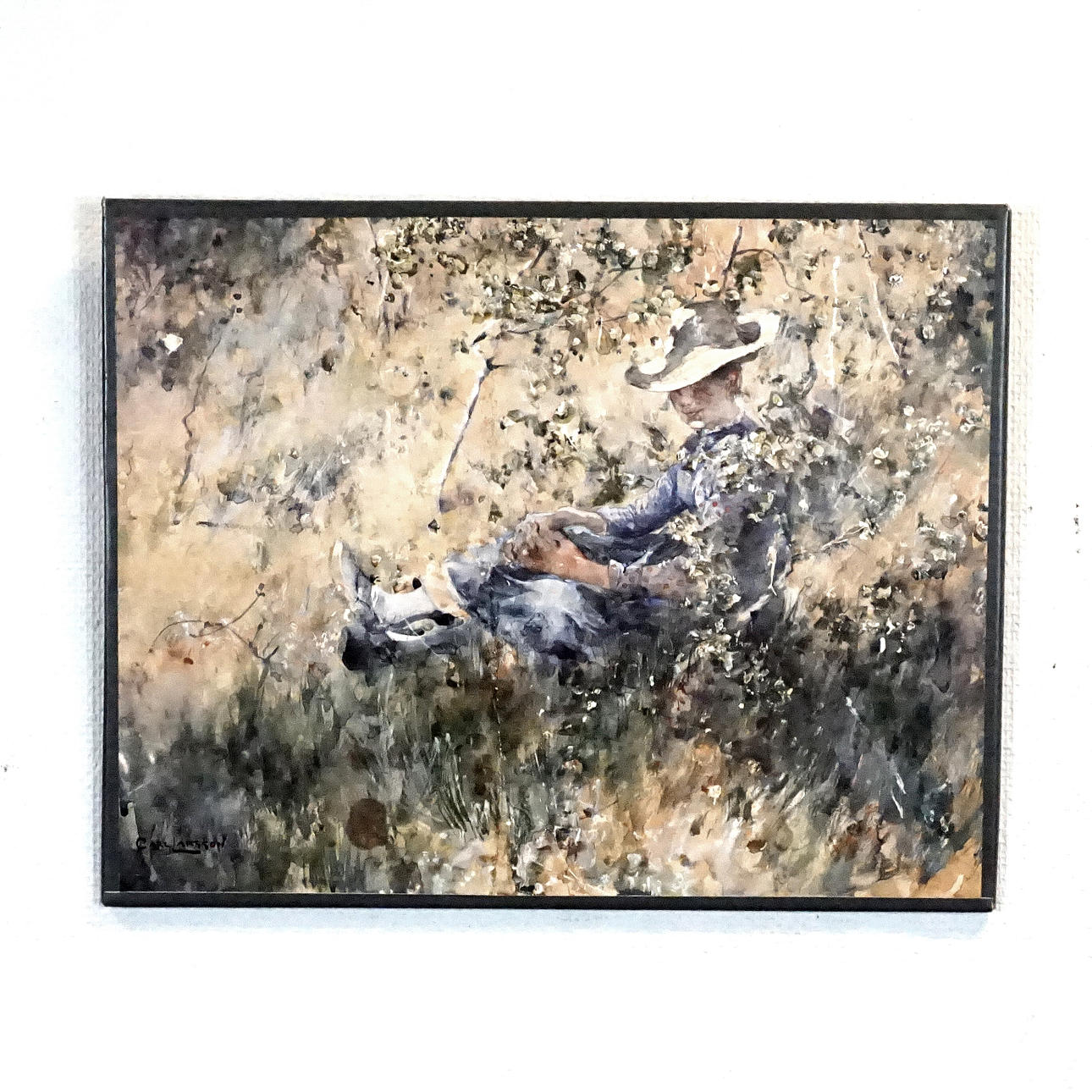 * "Flicka i blommande hagtorn", mått ca 47 x 37 cm.