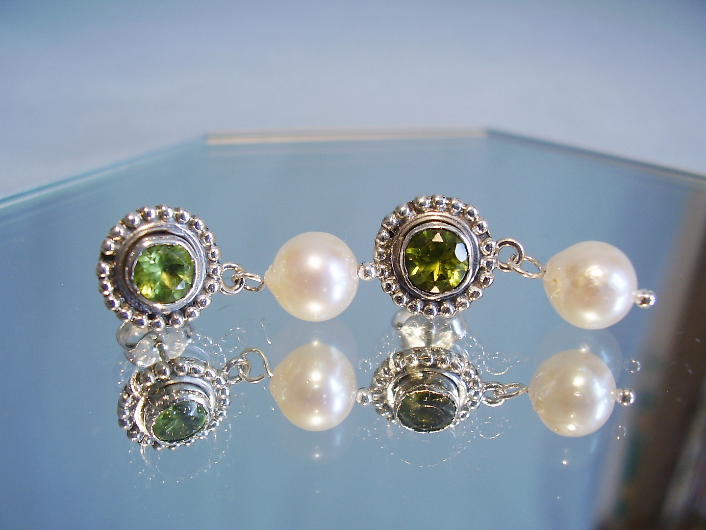 366348. PERIDOT PÄRLA ÖRHÄNGEN SILVER 925.