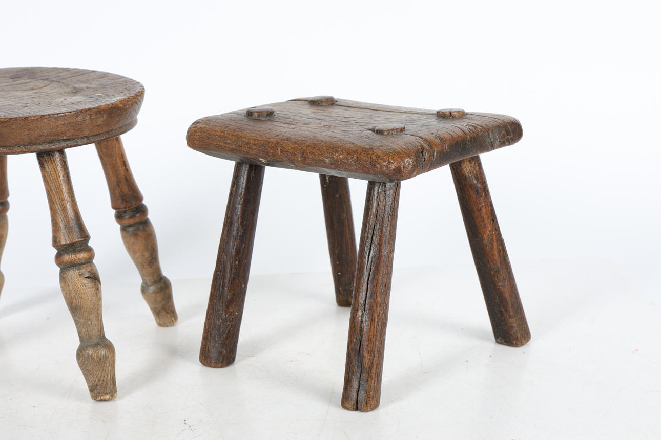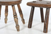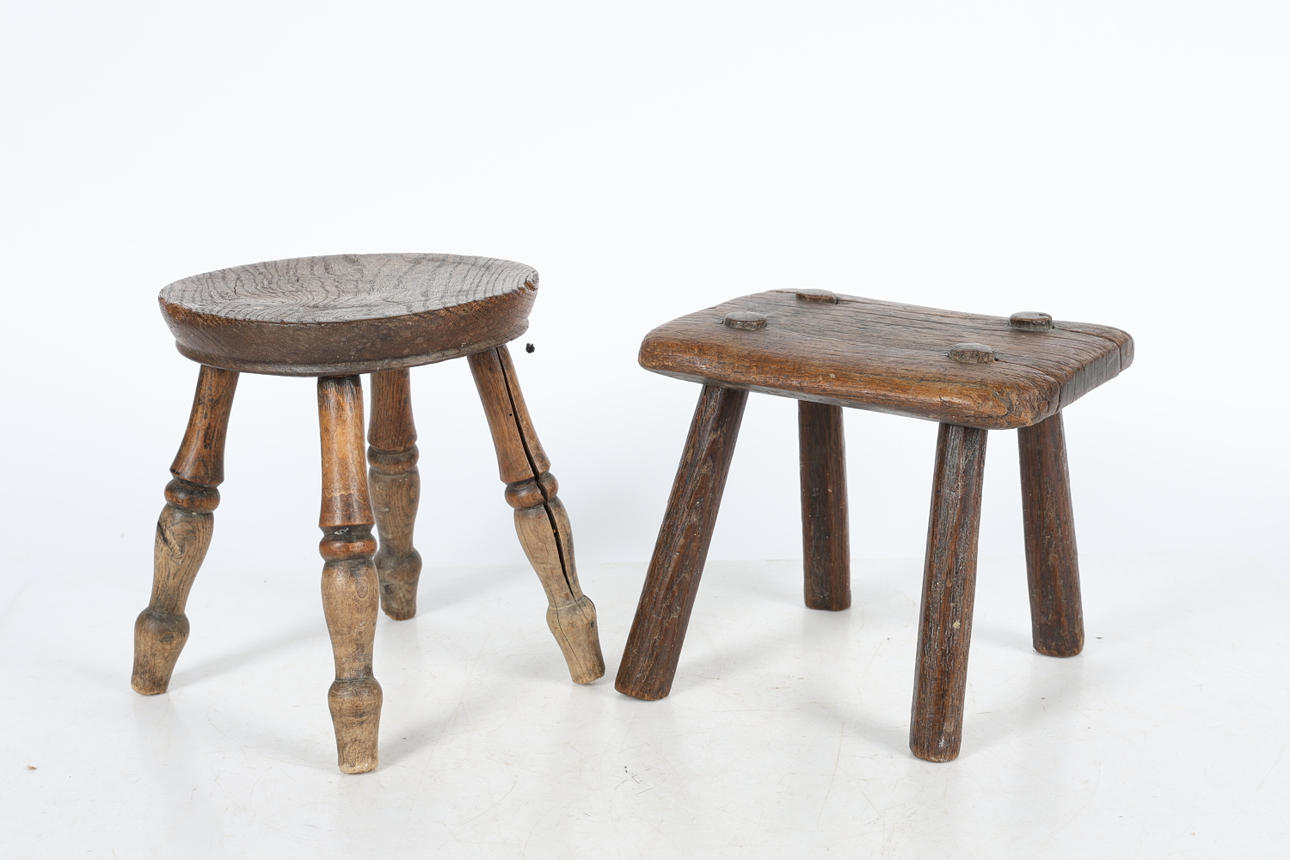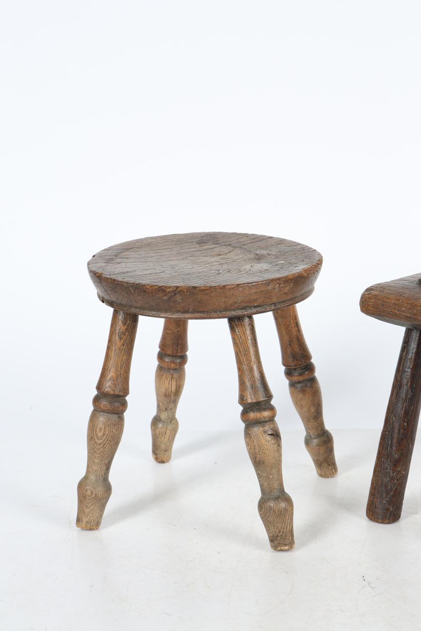 Almexemplet med en cirkulär topp ovanför vända ben, 20 cm bred, 23,5 cm hög, den andra med en rektangulär topp ovanför vända ben23cxm lång, 18,5 cm bred, 20 cm hög.