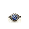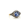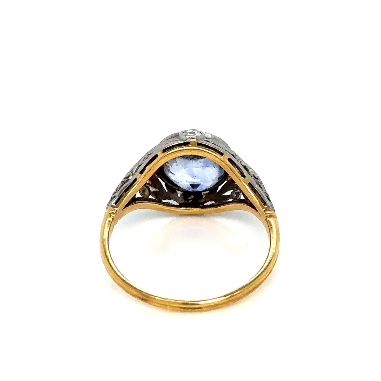 Ring 18k med en fasetterad ljusblå sten samt mindre gammalslipade diamanter, stl. ca 18,5 mm, totalvikt 3,9 g.