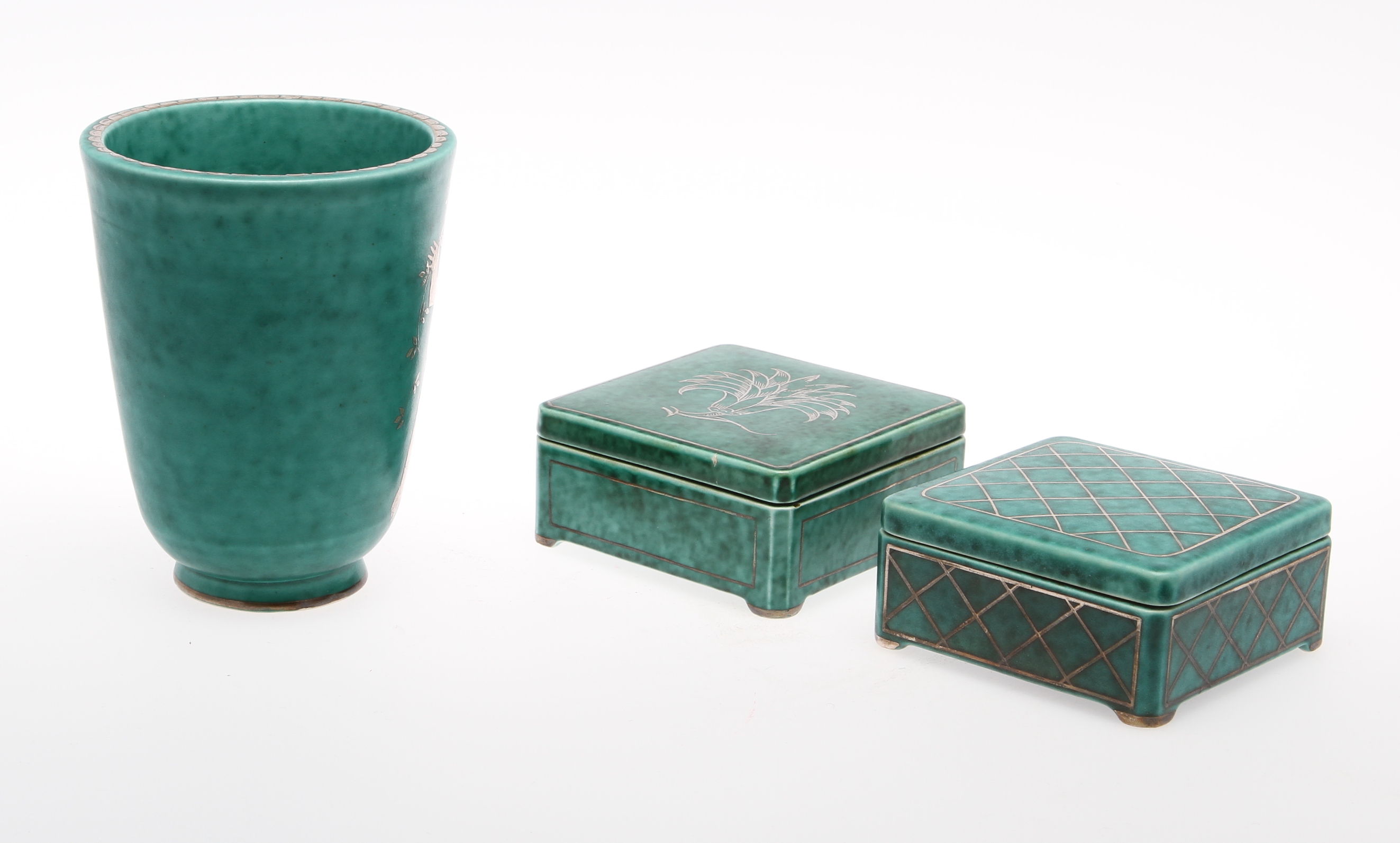 36647. WILHELM KÅGE. 2 askar samt vas, "Argenta", Gustavsberg.