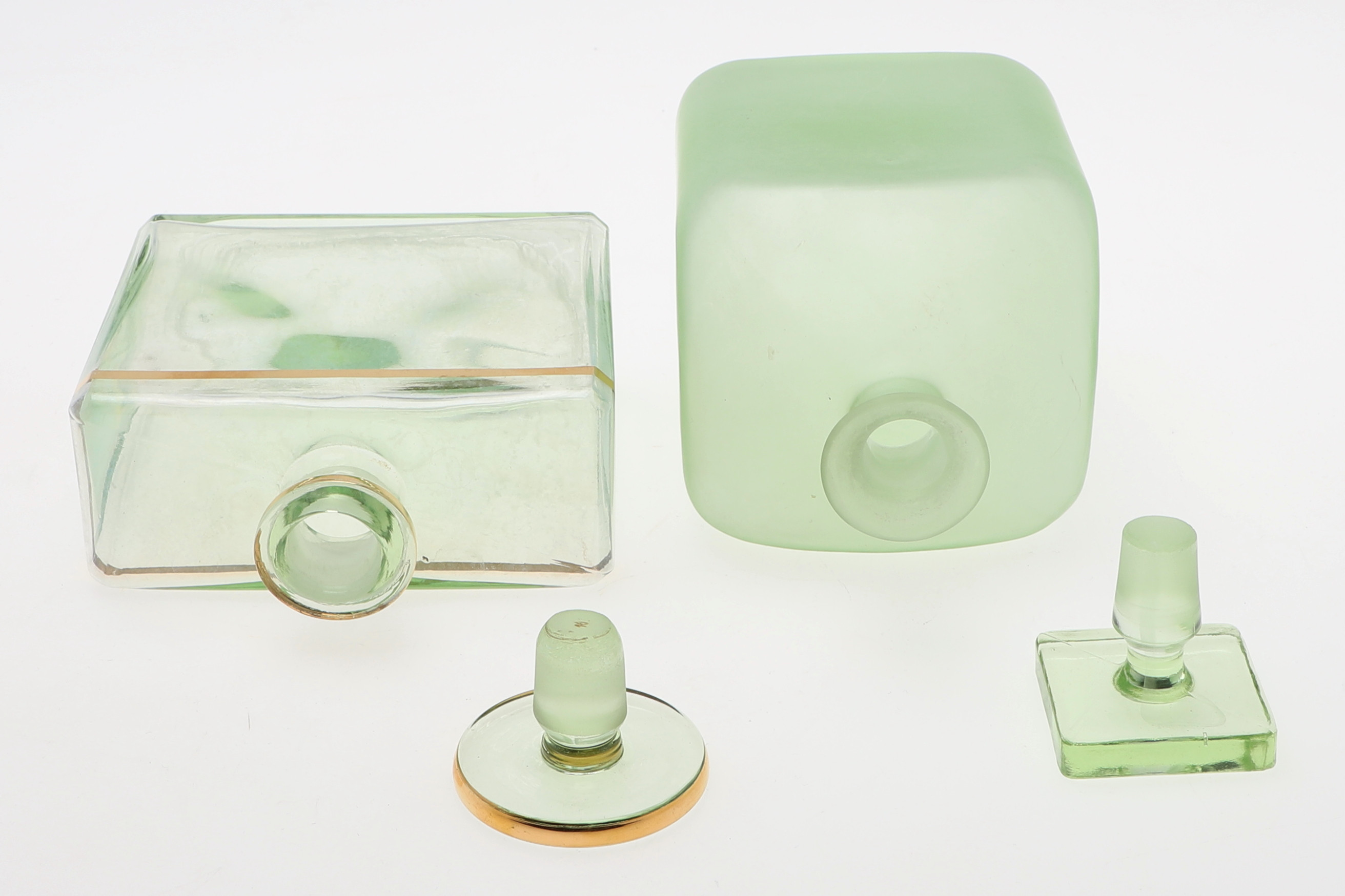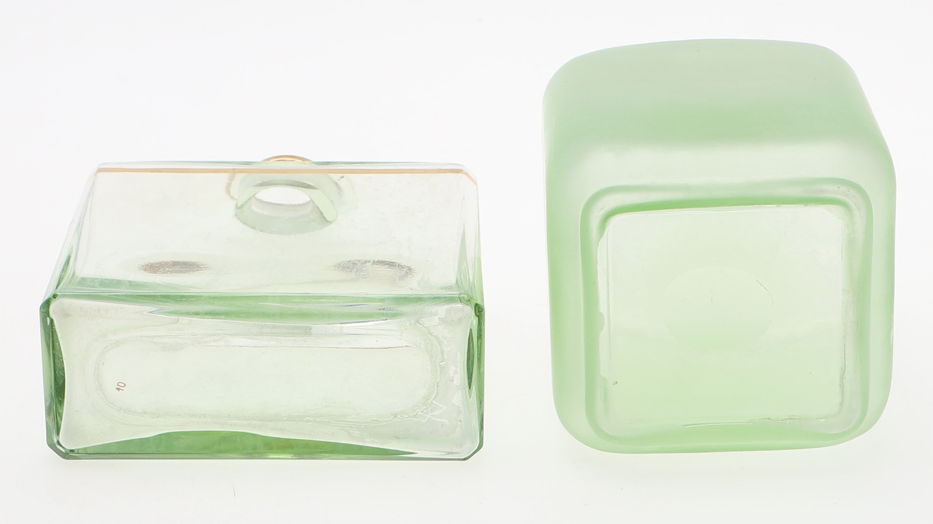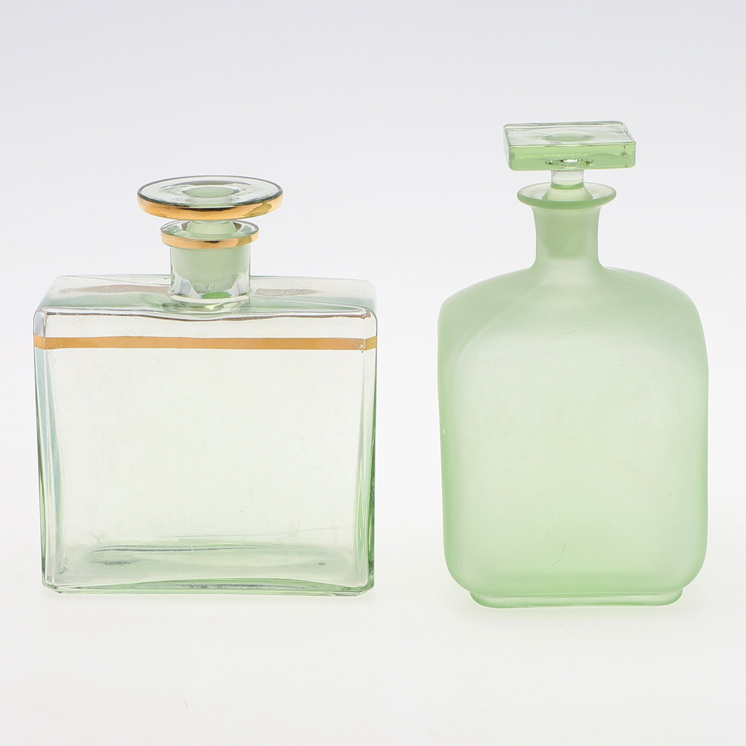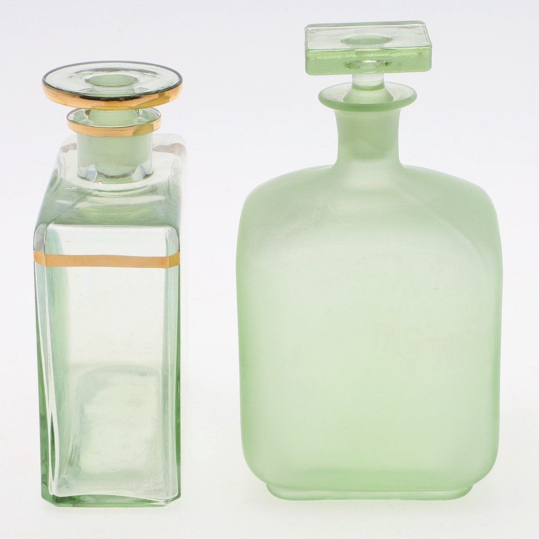3666005. KARAFFER, 2 st. glas, delvis uranglas, 1900-tal.