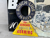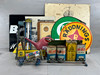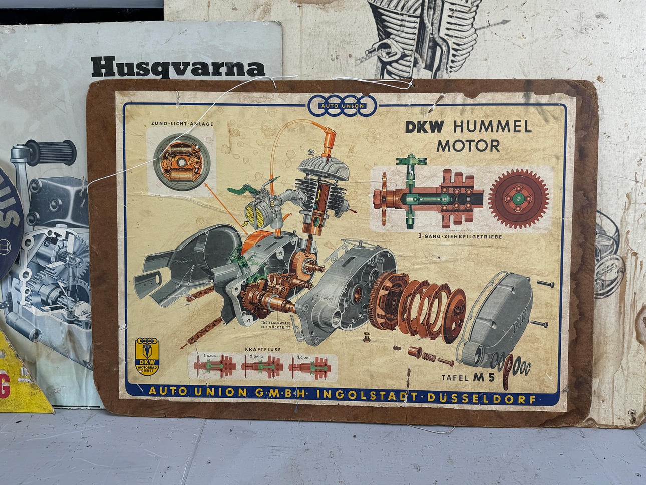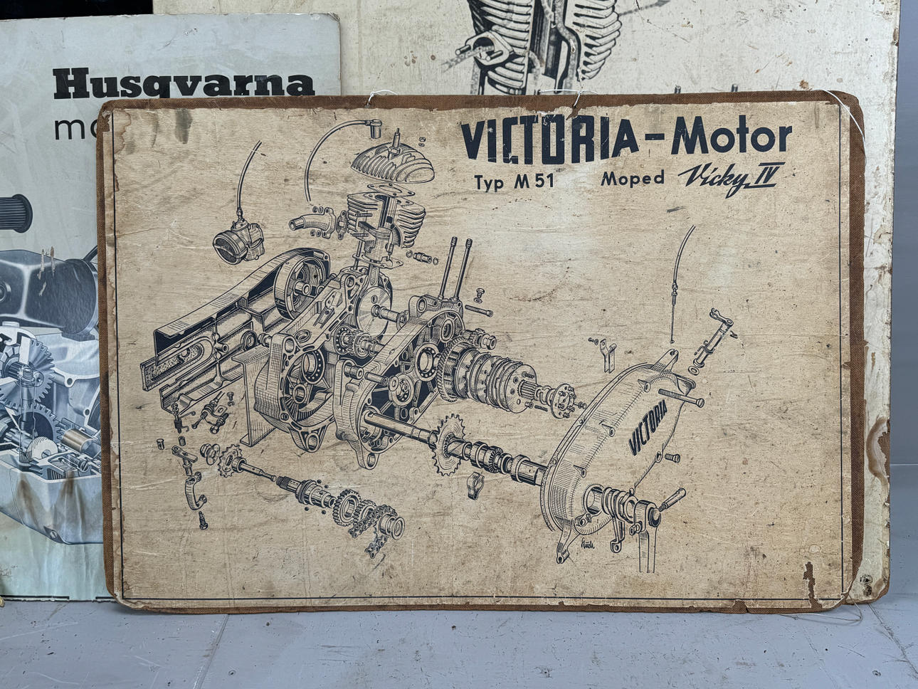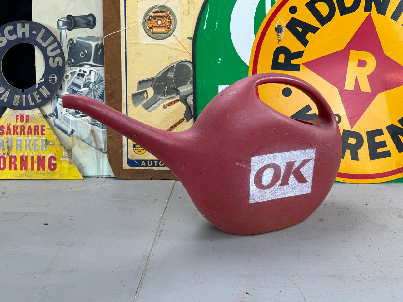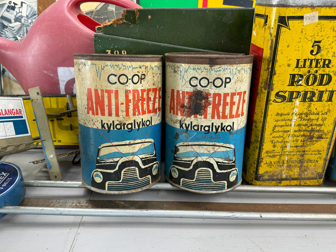 Bl.a plåtburkar, planscher, reklamskyltar, fläktremsmätare, vattenkanna m.m.