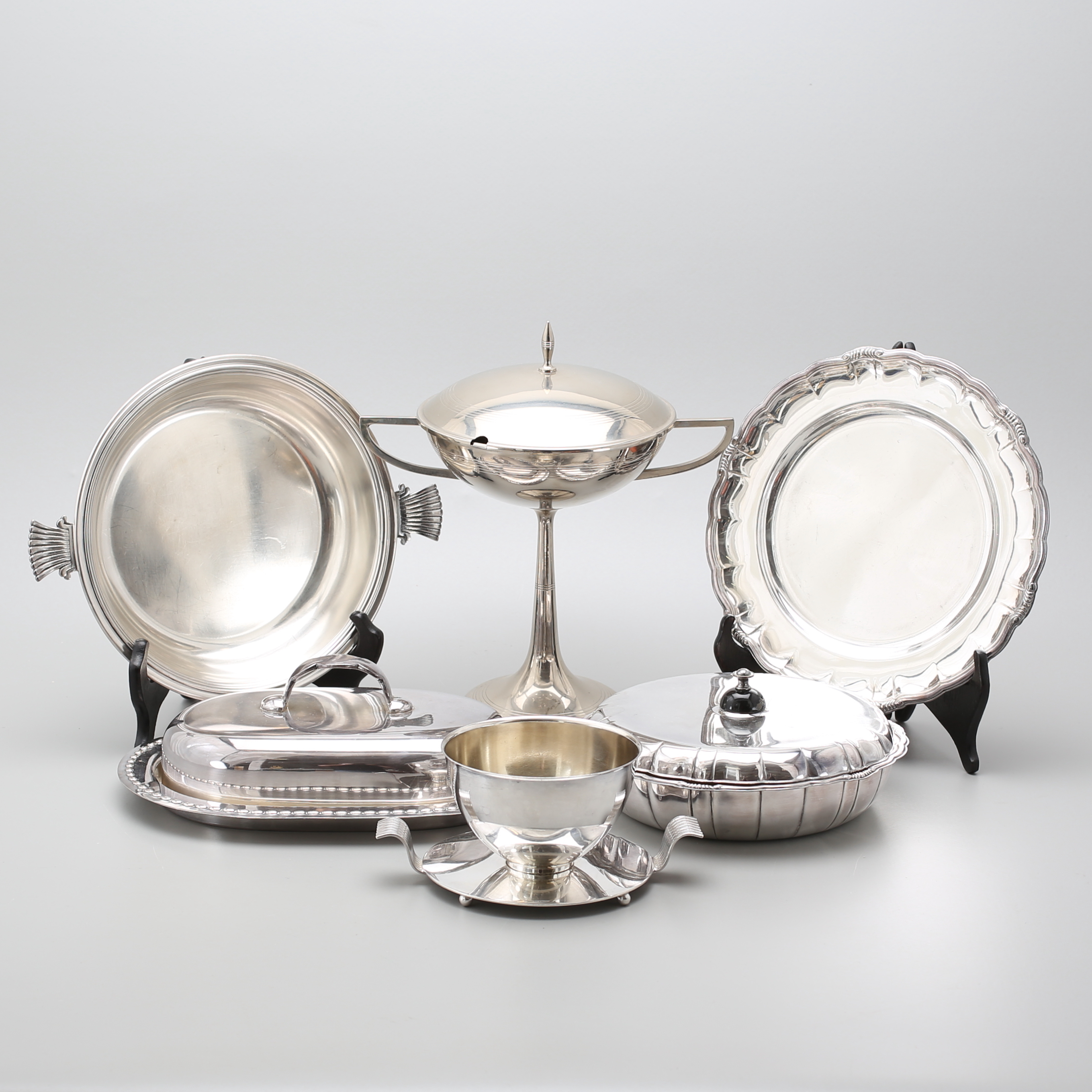 366876. SERVERINGSFÖREMÅL, vitmetall, 9 delar.