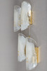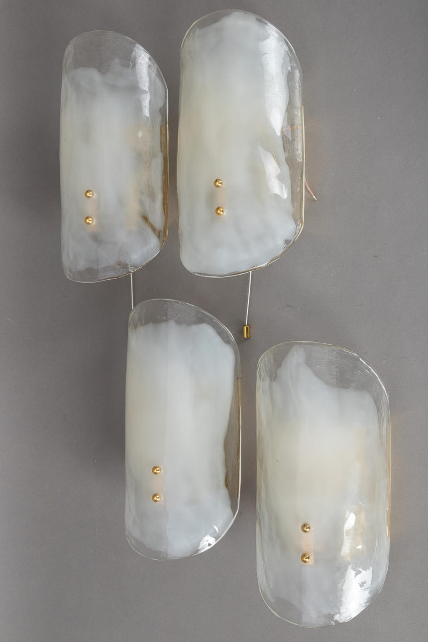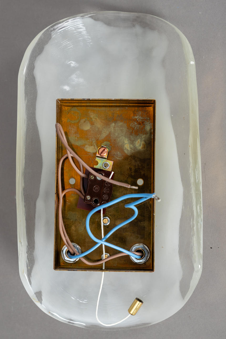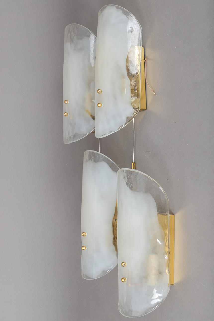 Mässing och glas. 2 kontaktpunkter vardera, E14-uttag. ca H 30 cm, B 15 cm, D 10 cm.