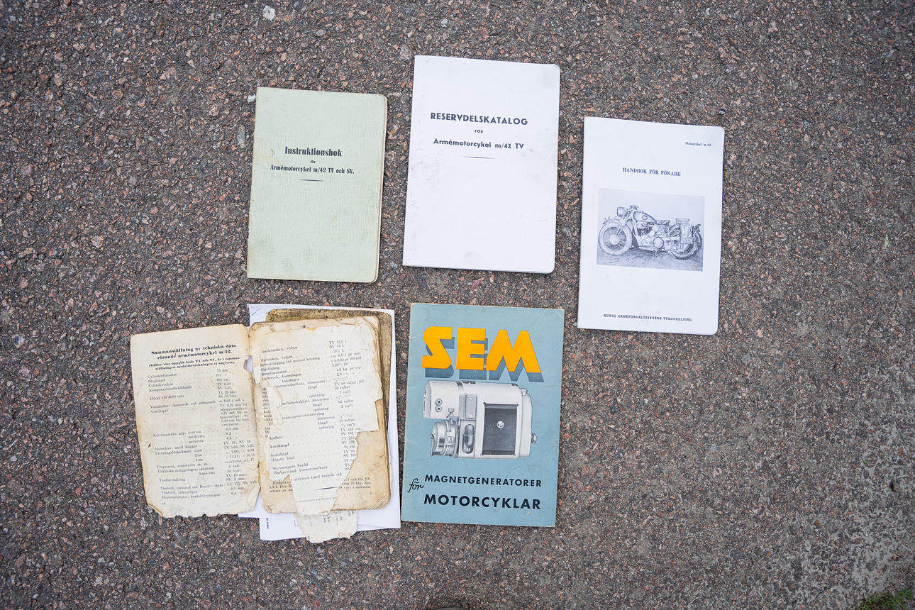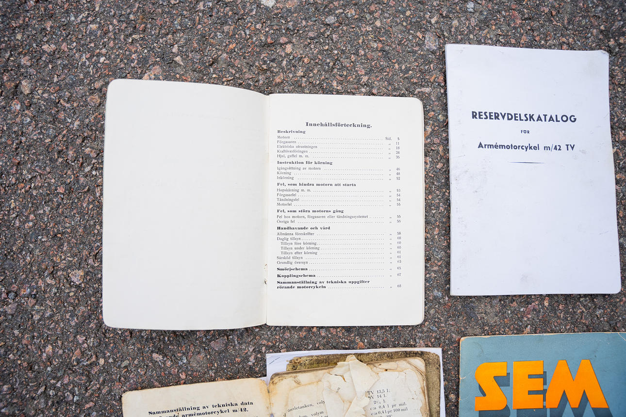 Instruktionsböcker i original för motorcykeln samt SEM magnetgenerator följer. Kopior av handbok samt reservdelskatalog för motorcykeln följer även.