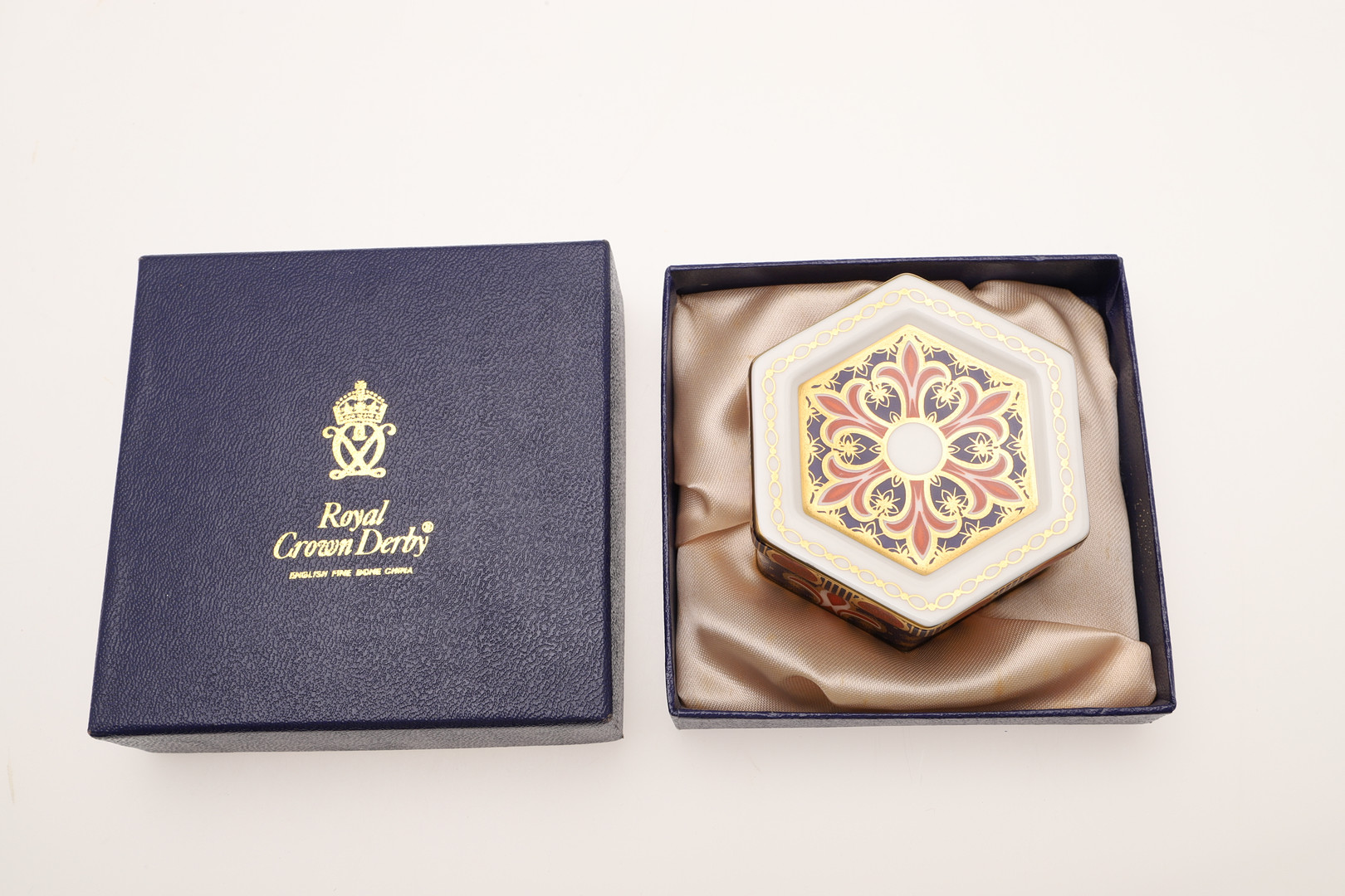 3669270. ROYAL CROWN DERBY BOXADE FÖREMÅL.