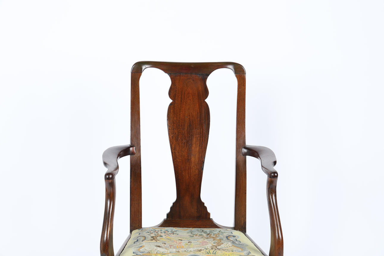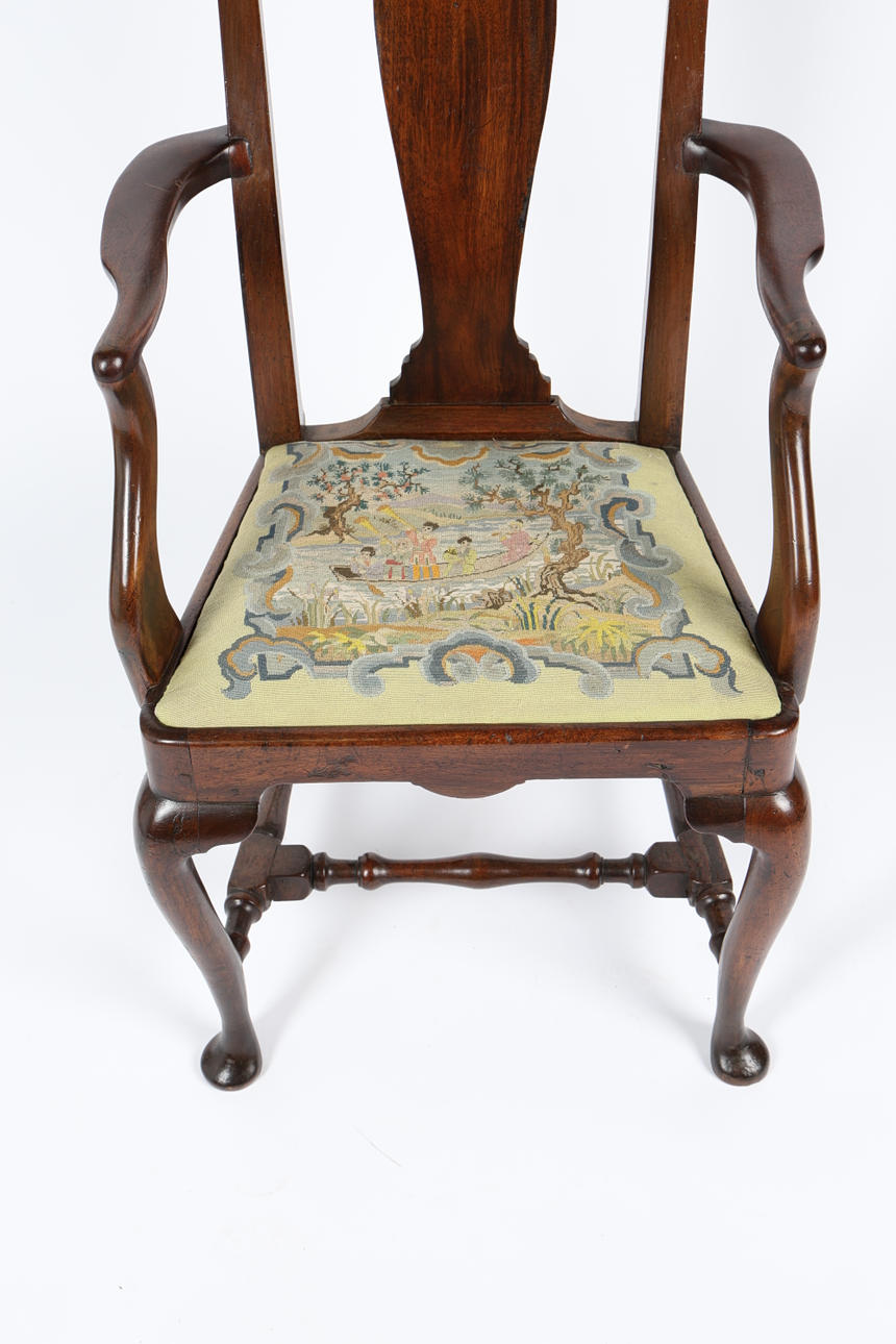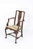 Vasen kommer tillbaka ovanför en gobeläng i sätet flankerad av senare armar ovanför cabrioleben och vända bårar, 50 cm bred, 41 cm djup, 96 cm hög.