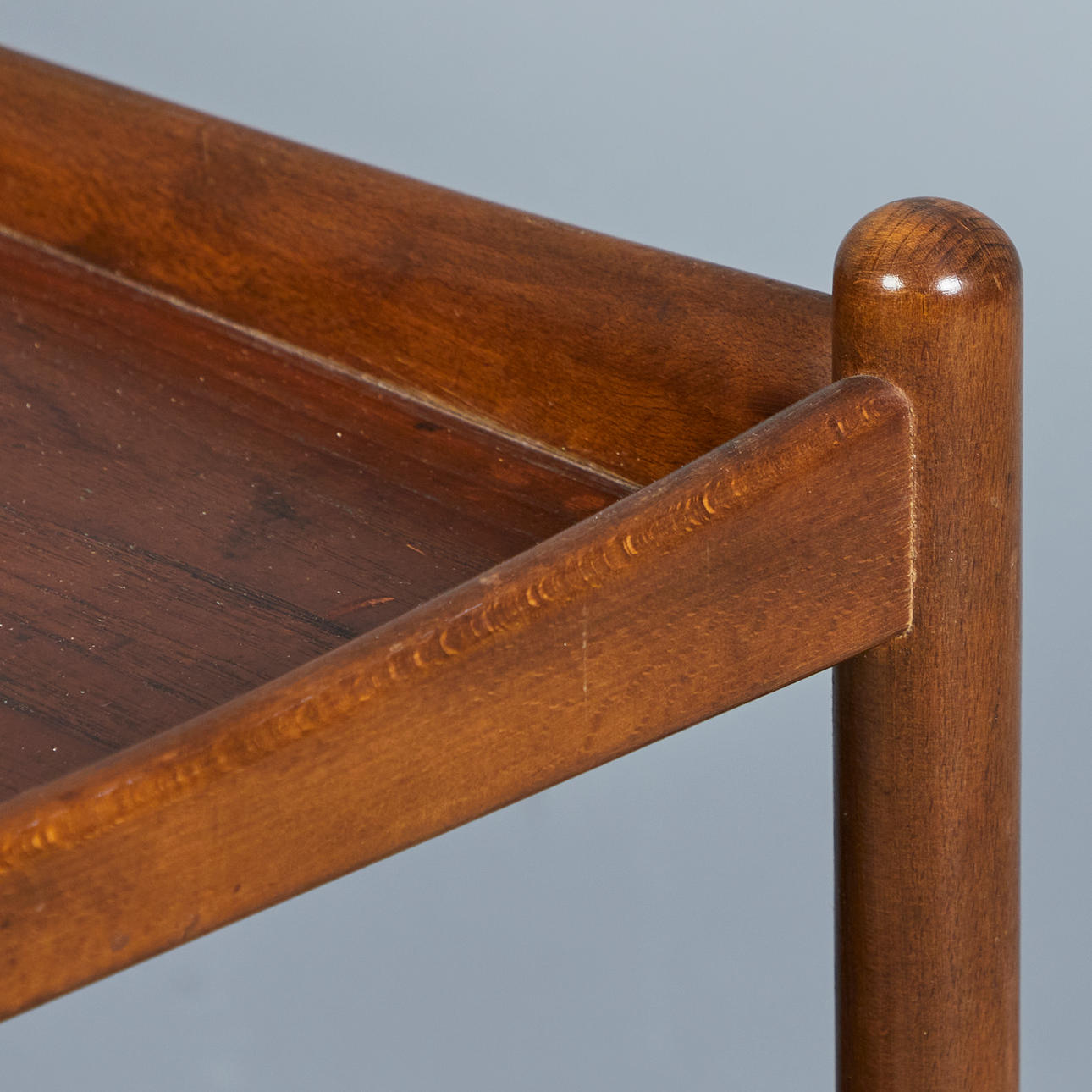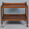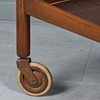 Rektangulär glaserad teakkonstruktion med två hyllor, på hjul, H.63cm, L.73cm, W.48cm.