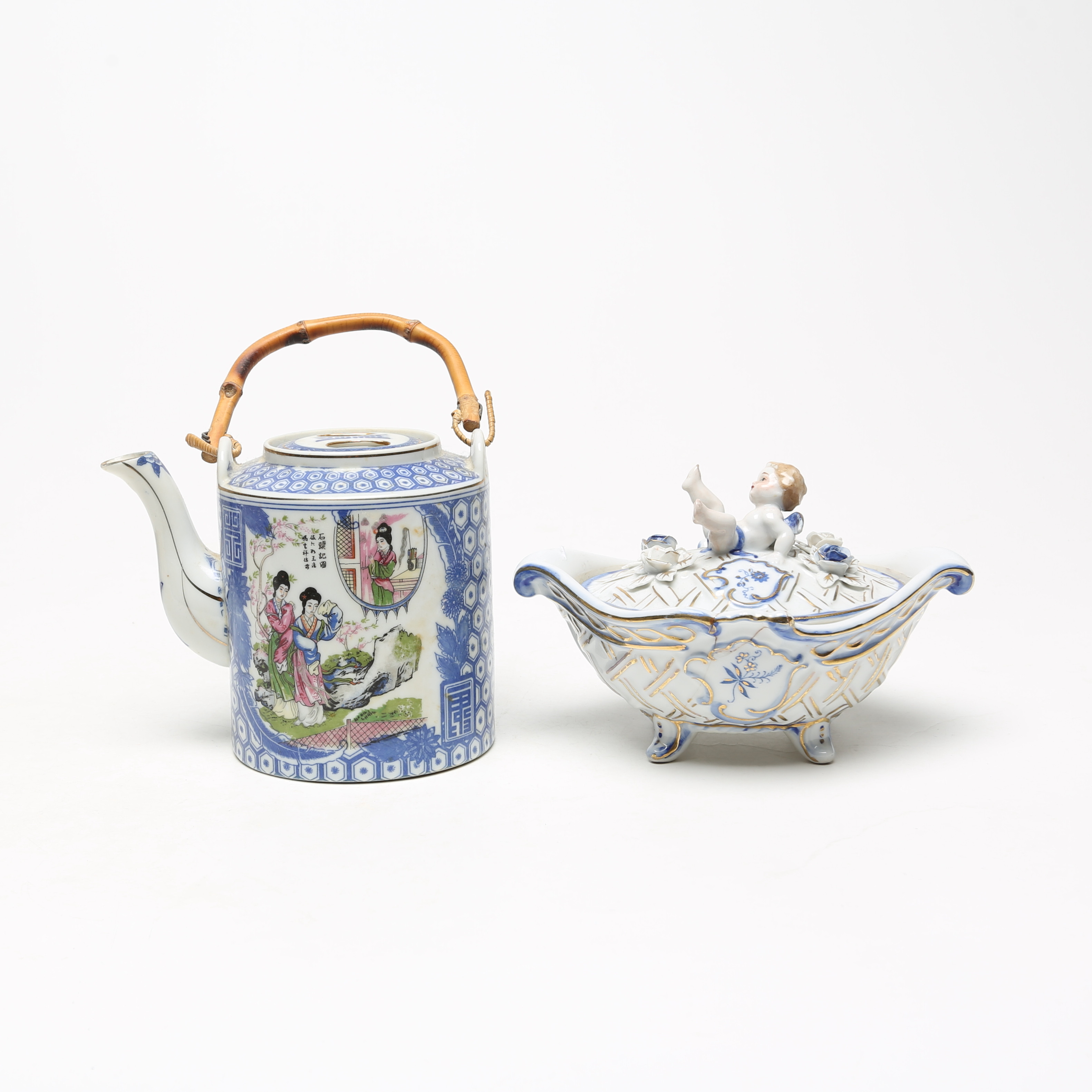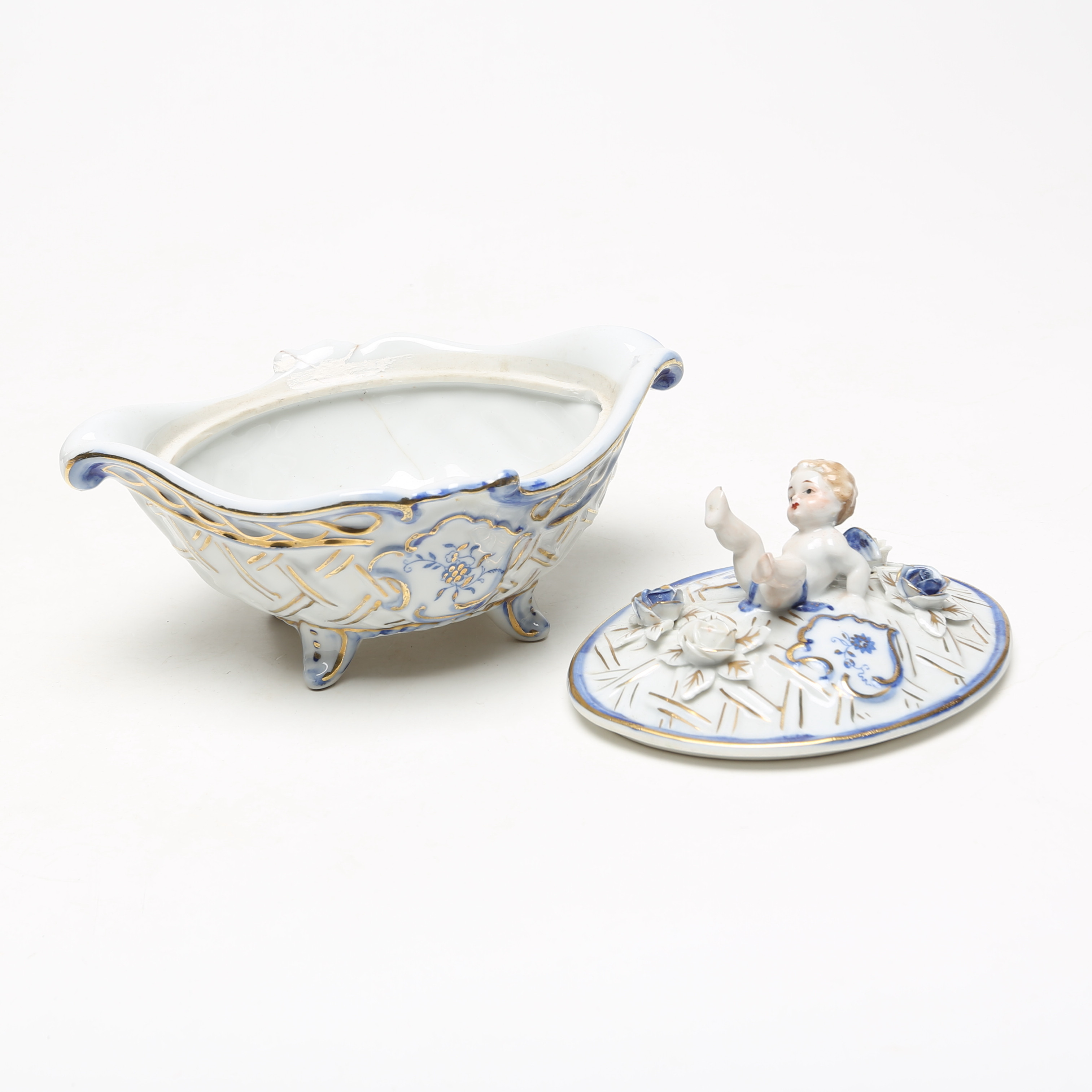 3673421. PORSLINSFÖREMÅL, 2 st, Importstämplar, 1900-tal.