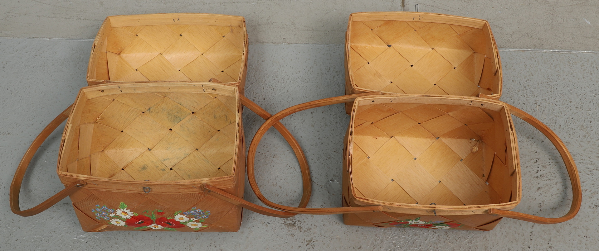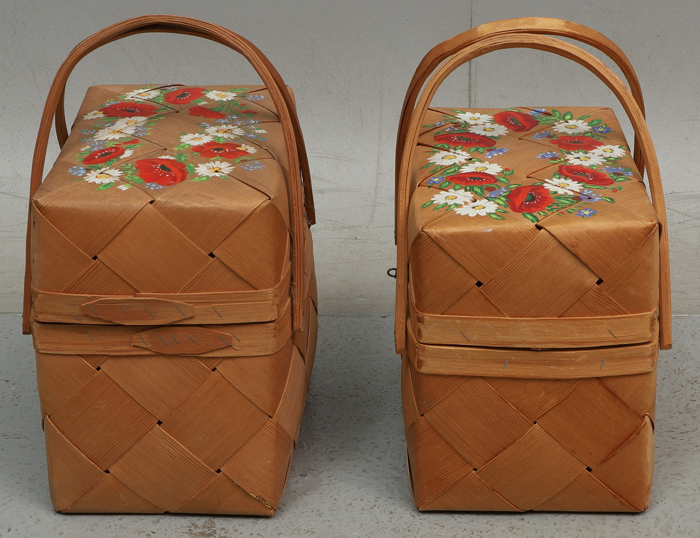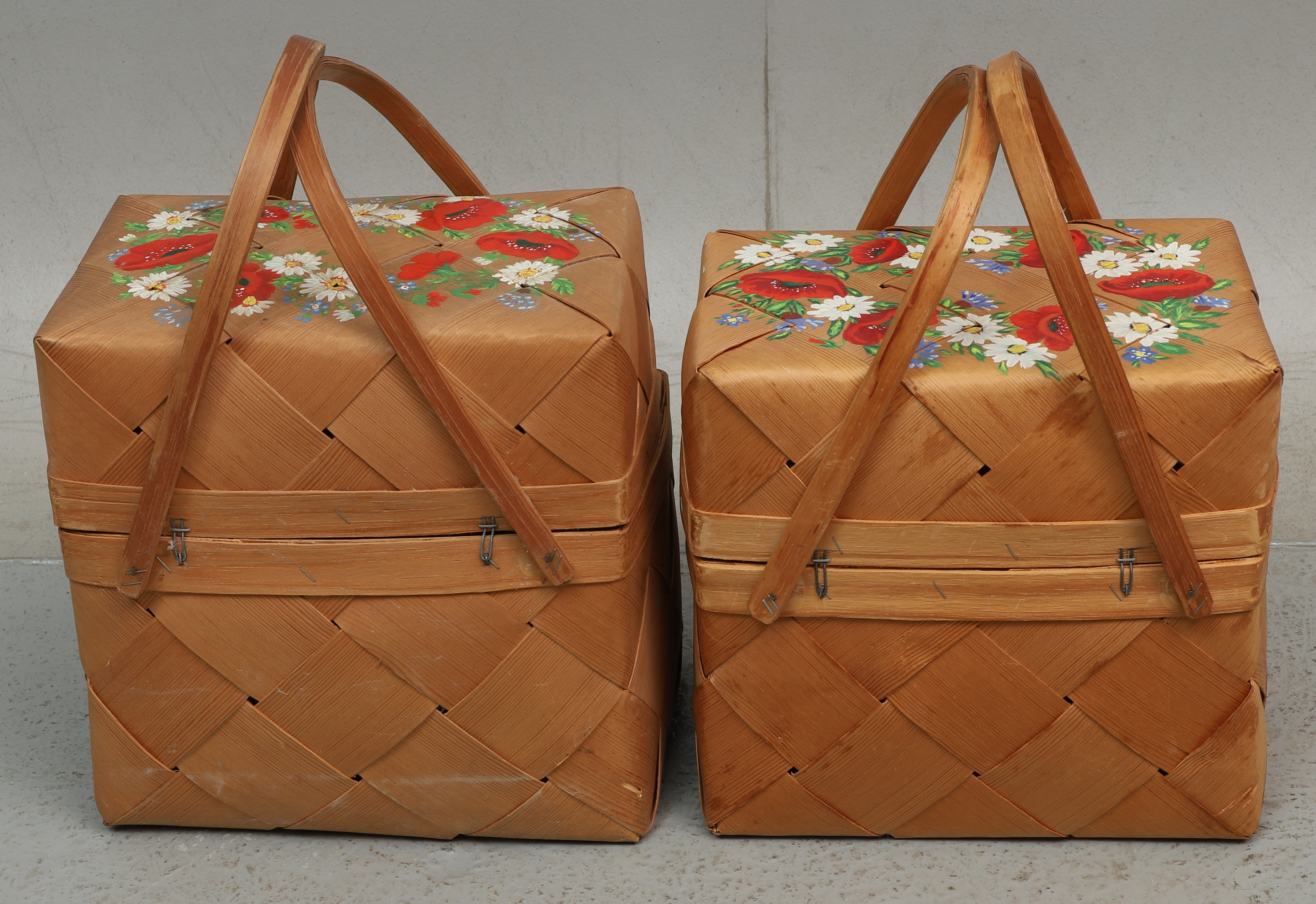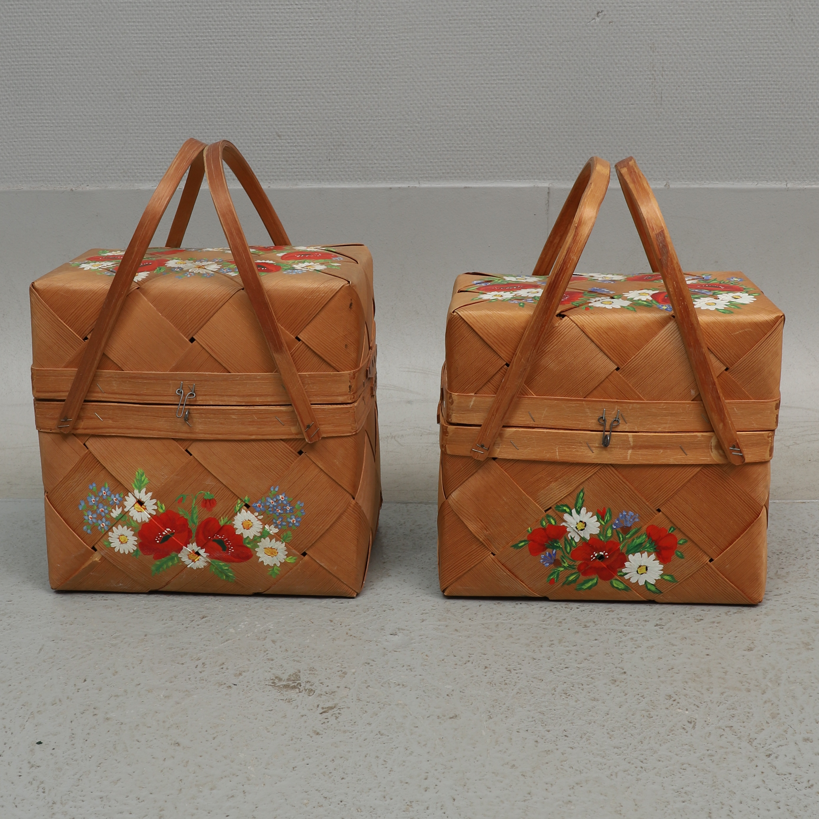 3674725. SPÅNKORGAR, 2 st. målade blommor, 1900-tal.