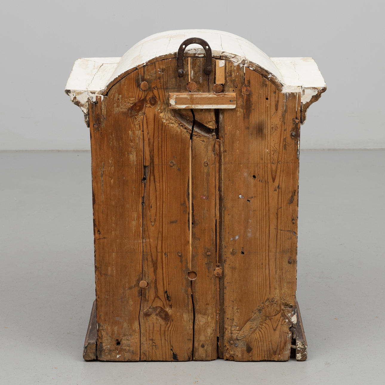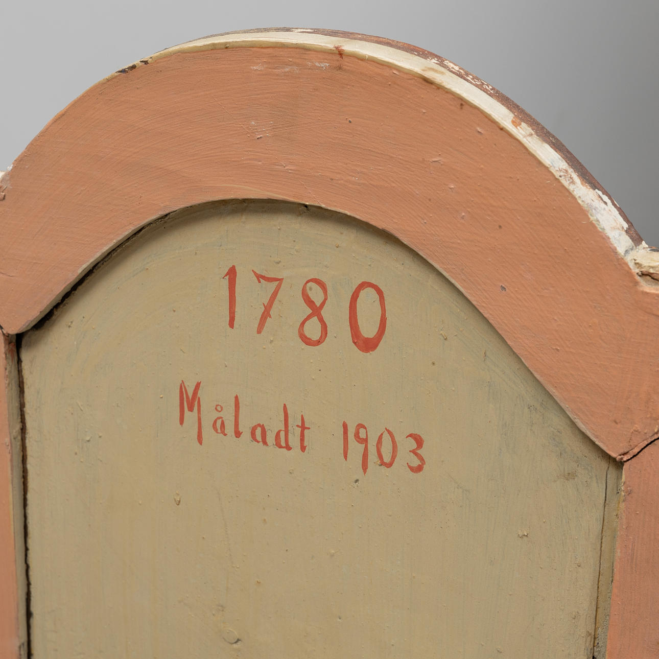 Åldersrelaterat slitage, torrsprickor, skador. Renovera, kompletterat. Senare bemålning med färgbortfall.