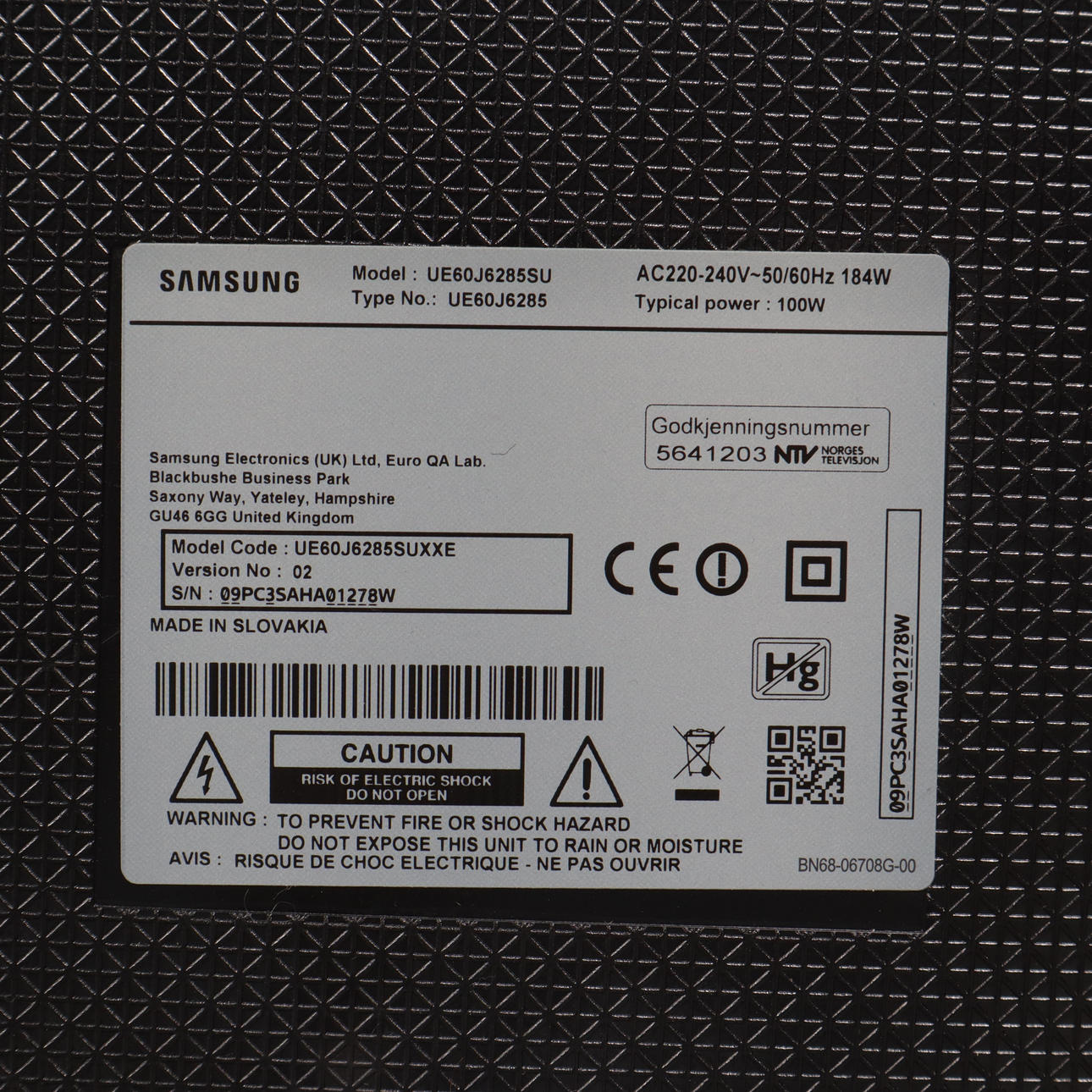 Modell nummer: UE60J6285SU