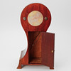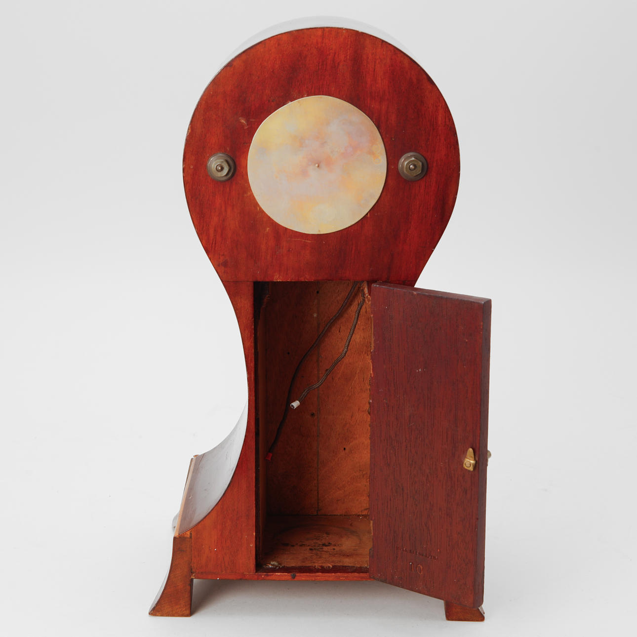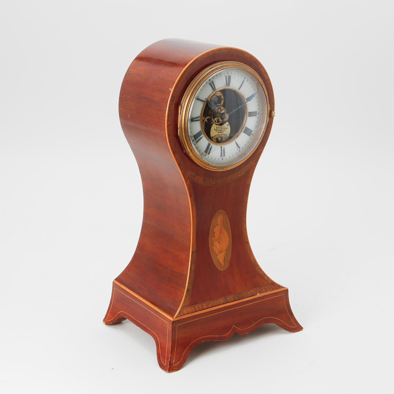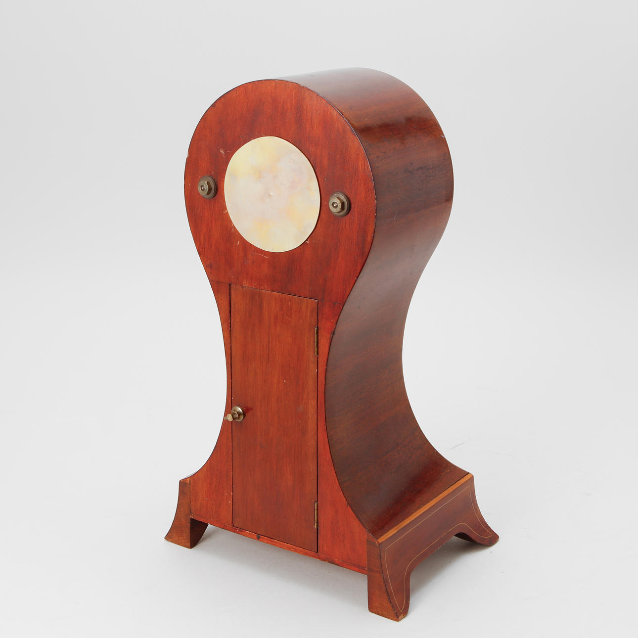 Mahogny med intarsiadekor av snäcka. Höjd ca 37 cm.