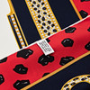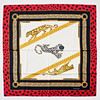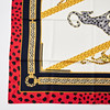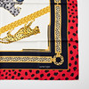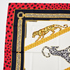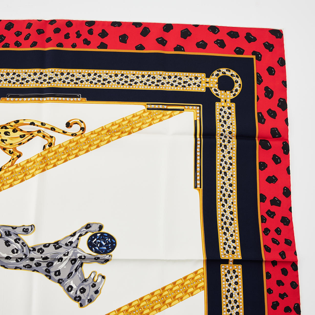 I siden, dekor av leoparder och ädelstenar mot blå och vit botten med röd bård, märkt "Must de Cartier Paris" samt med etikett, medföljande ask, mått ca 87x87cm.