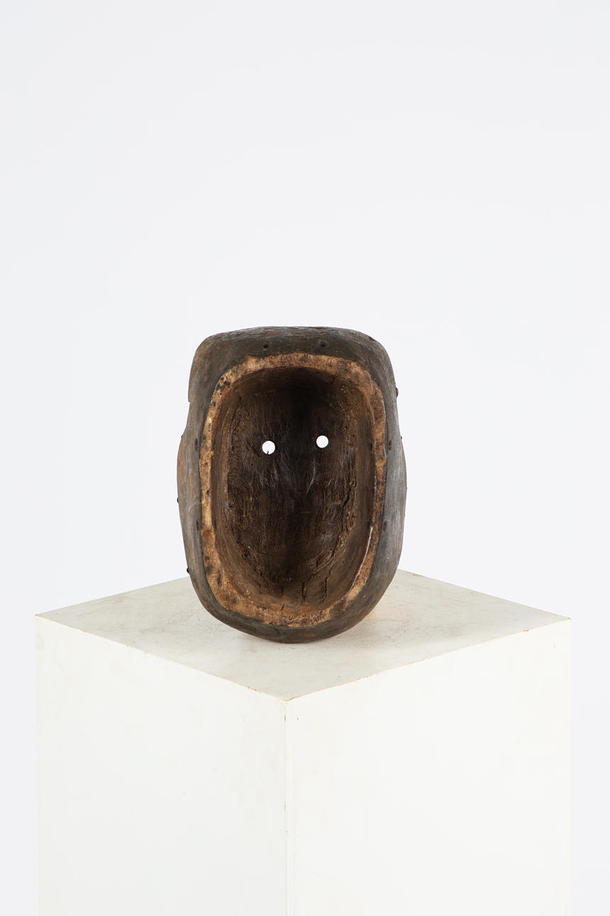 andra tredjedelen av 1900-talet, med vit pigmentering överallt, med en uttalad panna och kinder typiska för Kran och med cirkulära ögon och taggiga tänder, med järndubbar, 28 cm hög 21 cm bred