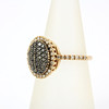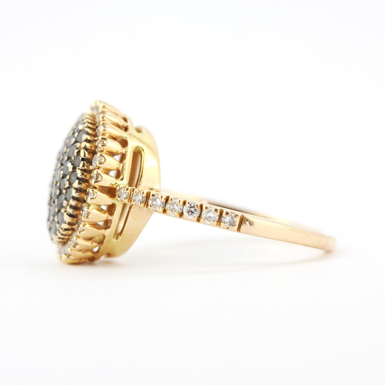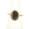 En 9 karat guldklusterring med diamanter och snygga svarta diamanter, ringstorlek M.