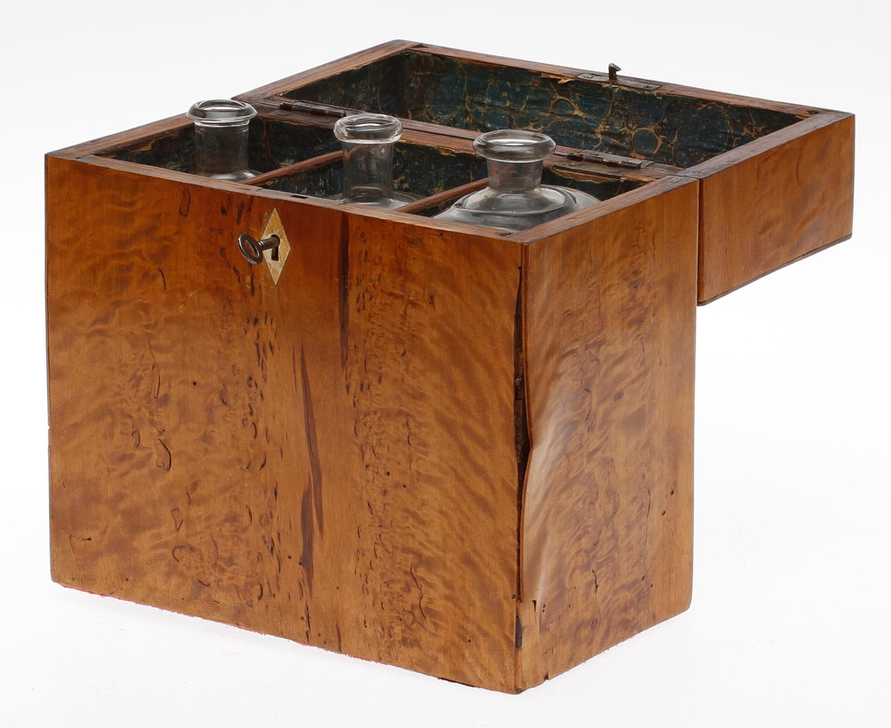 36863. FLASKSCHATULL med 3 flaskor, 1800-tal.