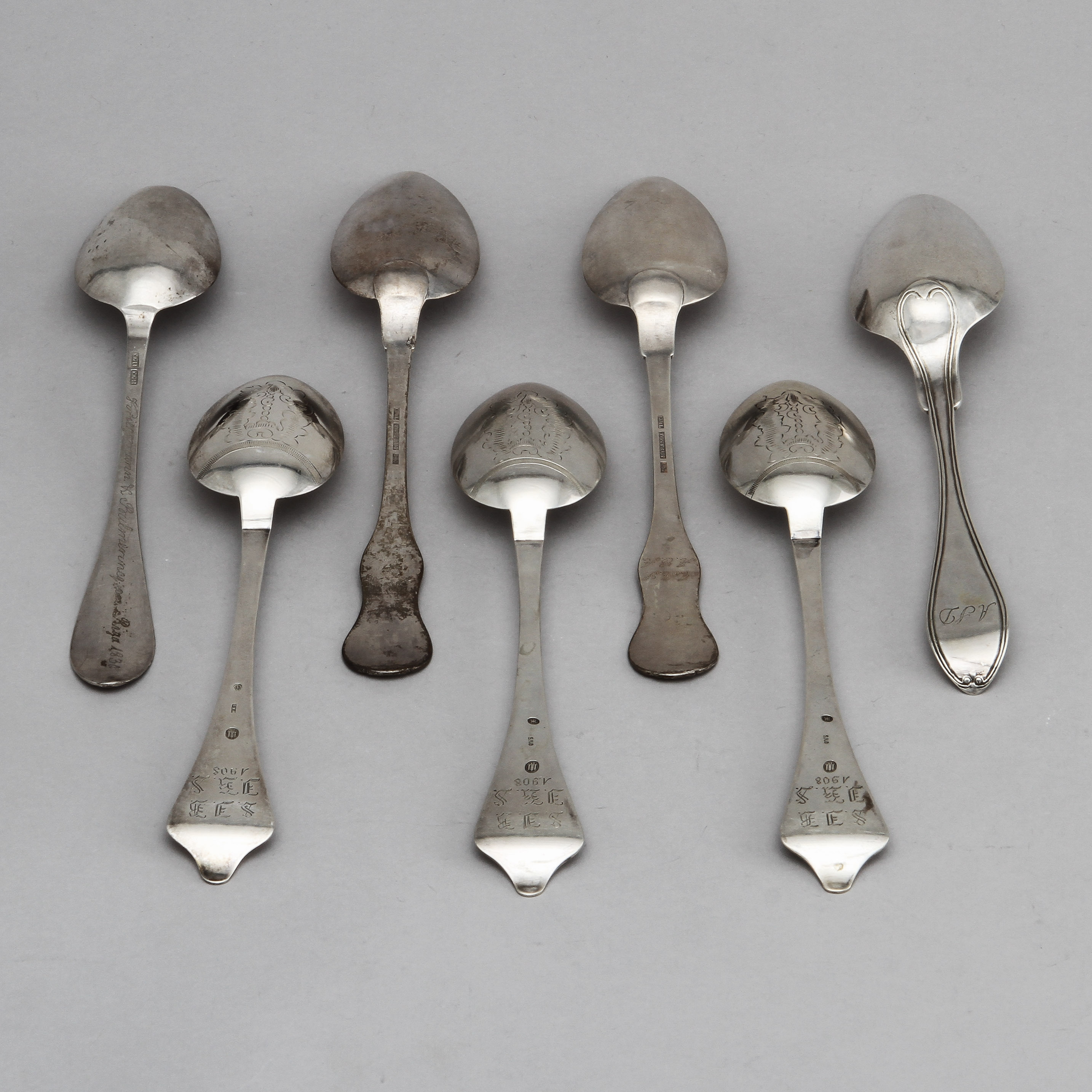 368730. SKEDAR, 7 st, silver, vikt ca 420 gram.