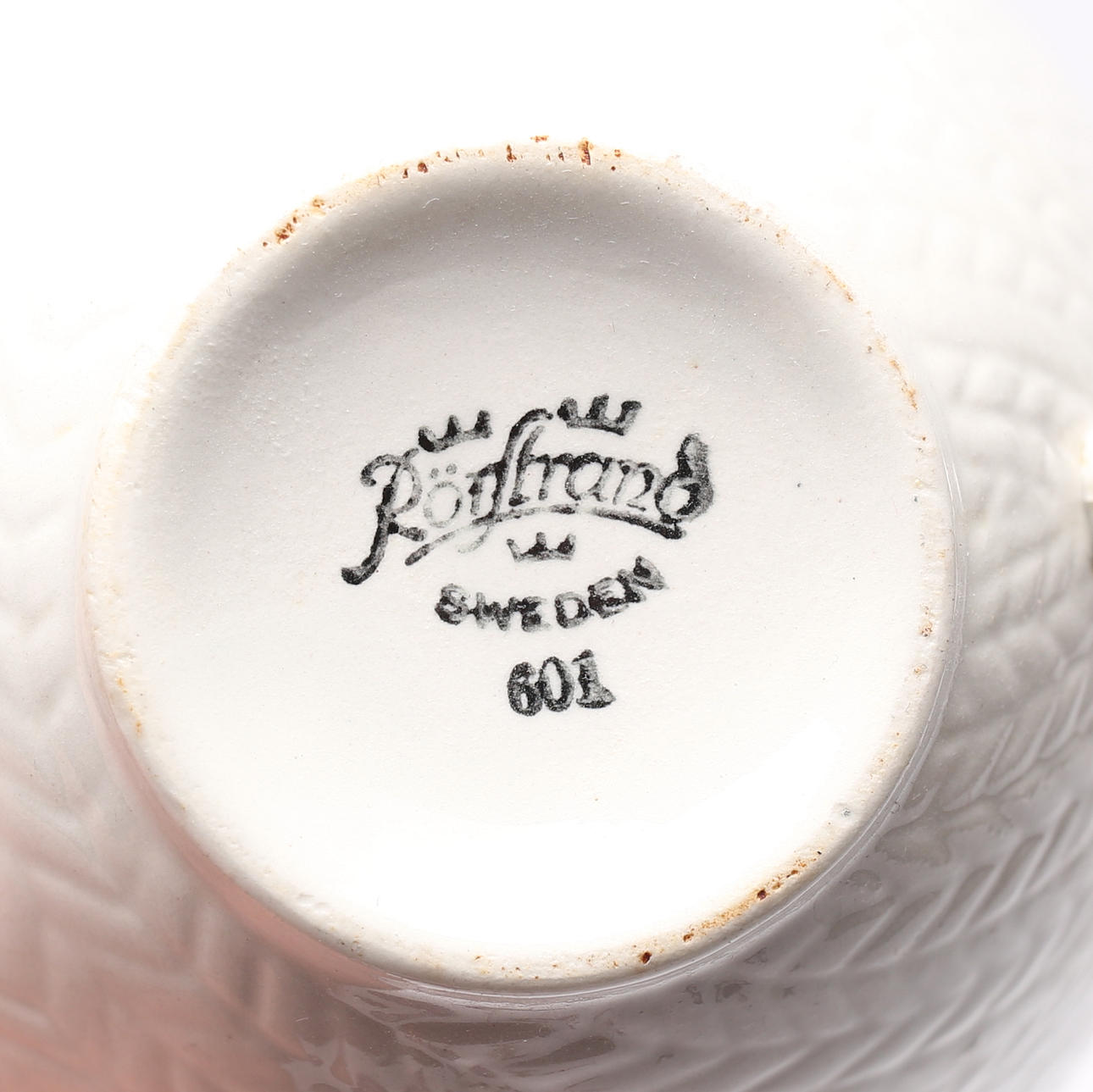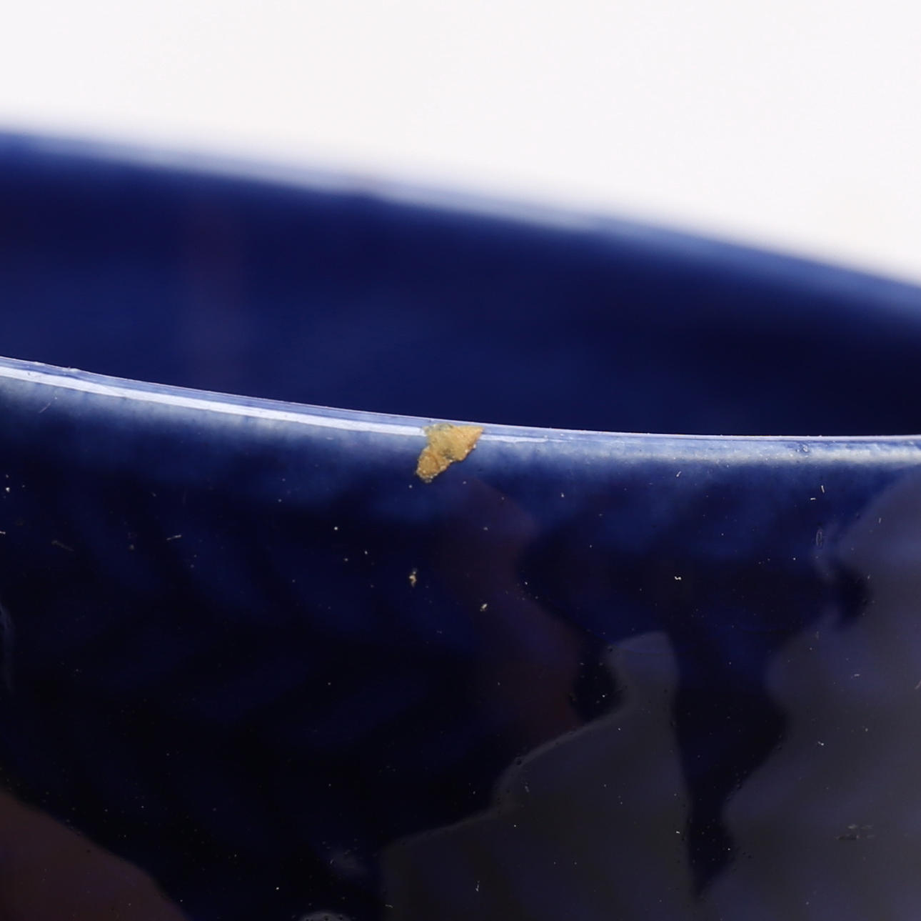 Bruksslitage, enstaka mindre spricka, mindre missfärgning, krackelyr samt glasyrskrap.