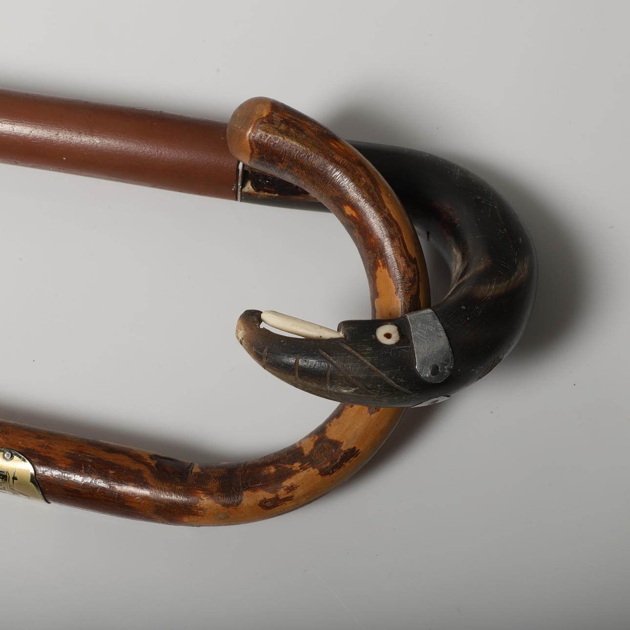1 vandringskäpp, målat trä med handtag i ben, längd ca 95 cm.